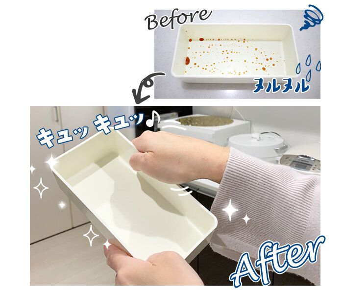 もちろん洗浄力もバッチリでした! とくに驚いたのが、お弁当箱や給食で使ったお箸など、時間がたってから洗うプラスチック容器の汚れ。なかなか取れないヌメリも一度でスッキリ! 洗ったあとはキュッキュッと気持ちのいい音が出て、気分爽快です」(寺島さん)