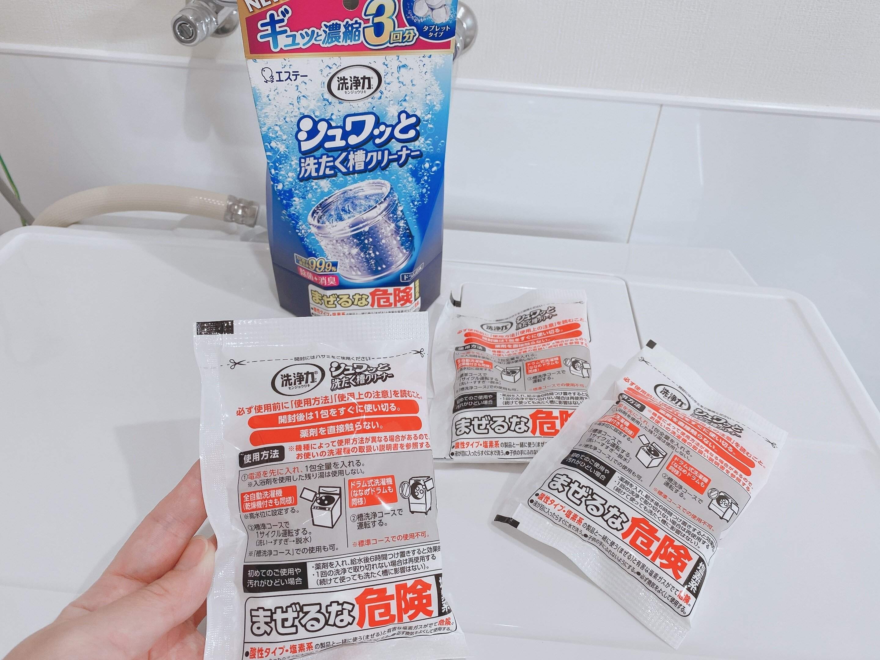 洗たく槽は定期的に掃除する必要があるので、3回分入っているとストックに便利です。