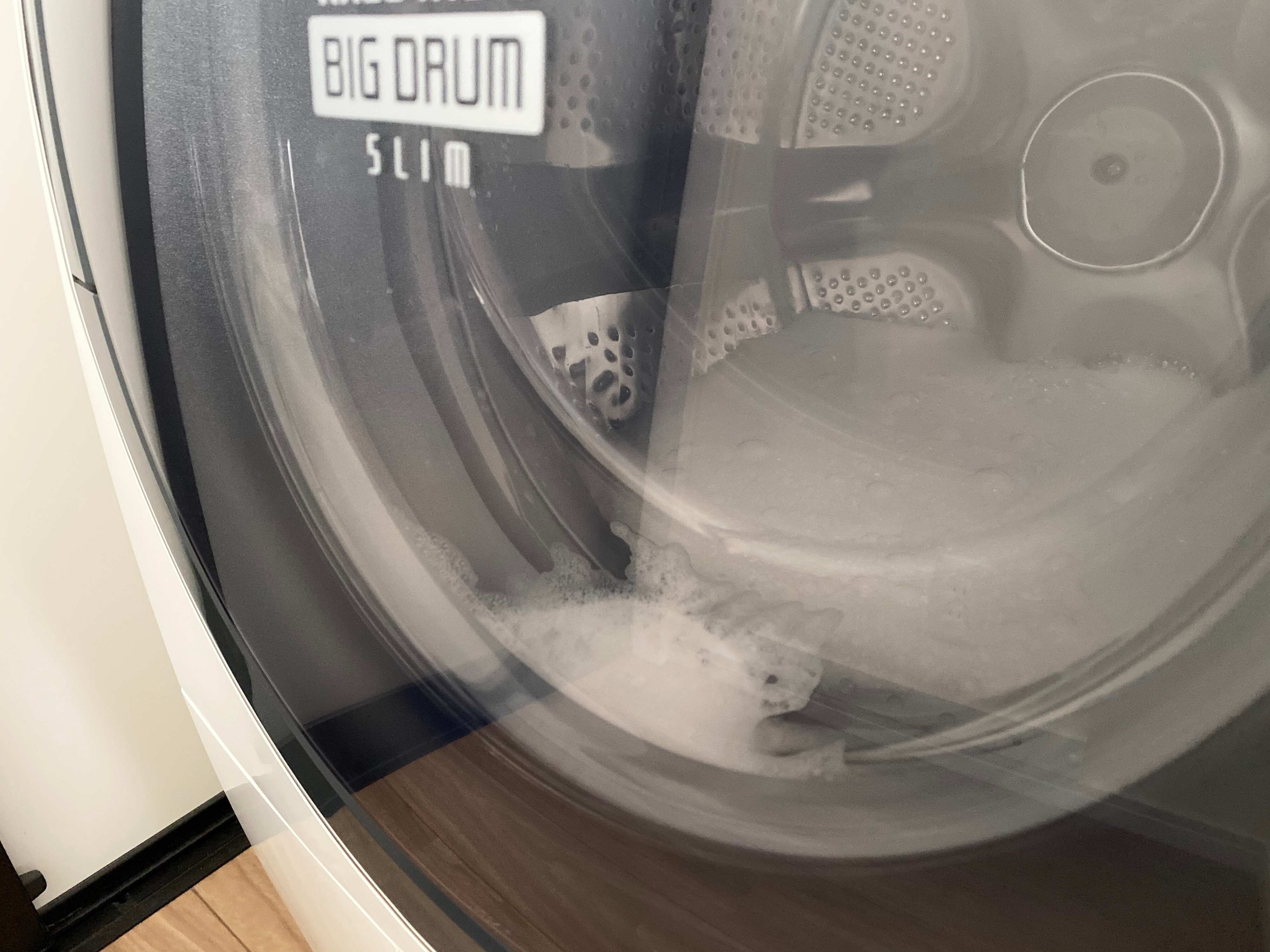 ドラム式洗濯機は泡が多量に発生すると自動で泡を消す動作をするため、少し心配していましたが、問題なく運転していました。