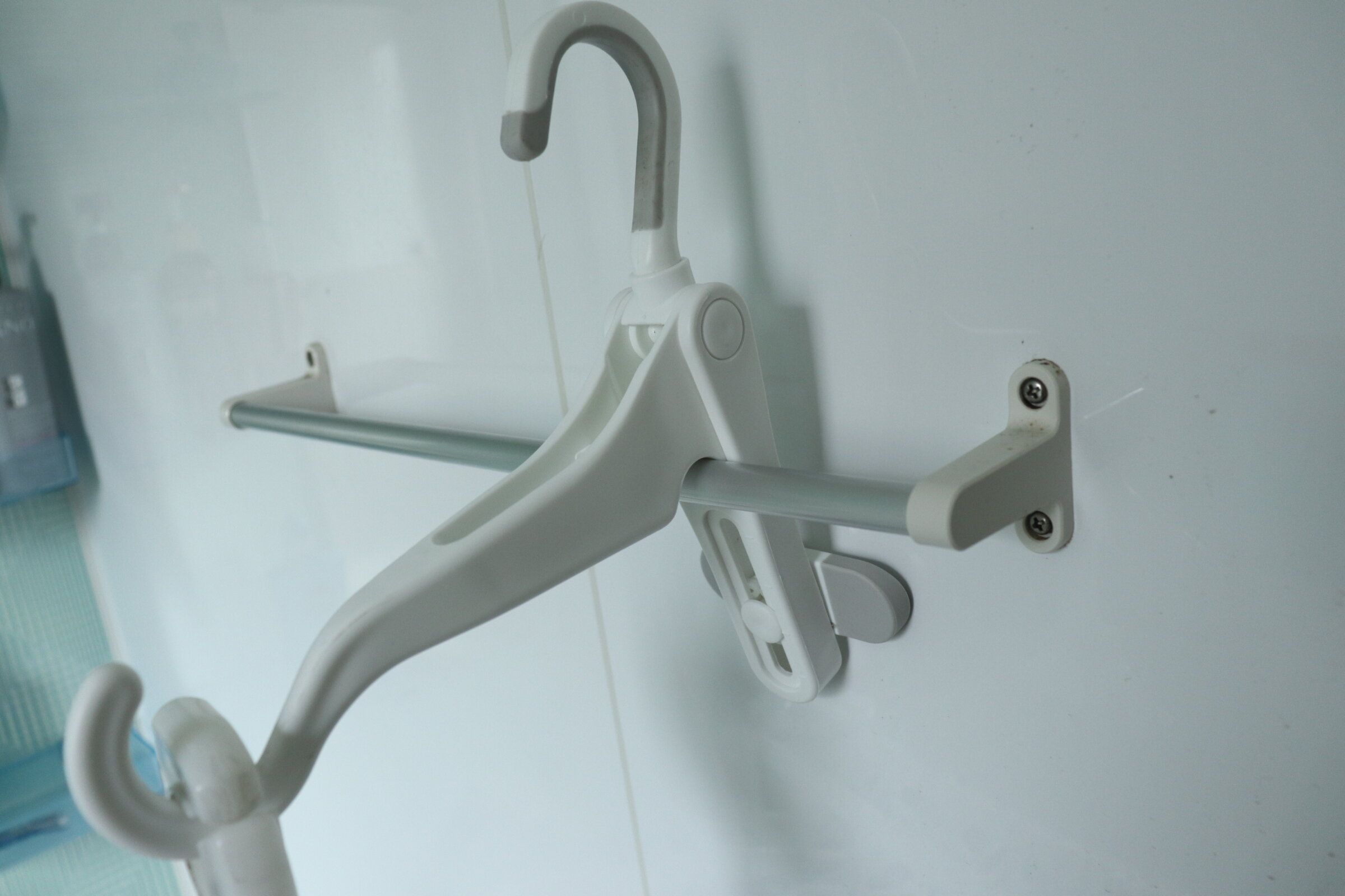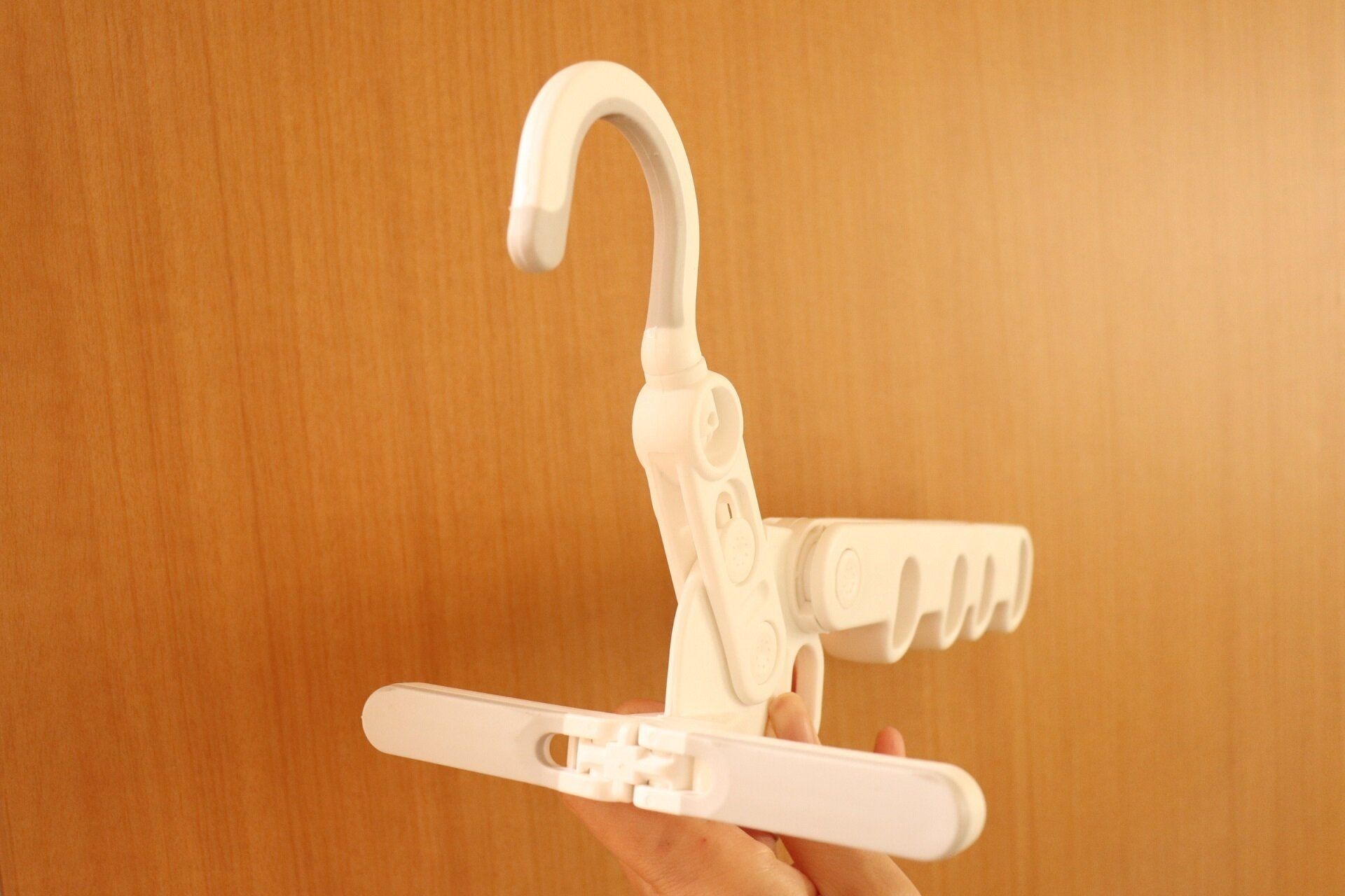 クローゼット扉やタオル掛け、壁面フックやドアの上部に引っ掛けて使うことによって干すところが増える優れもの!使わないときはこんなにコンパクトなのも嬉しいですね。対荷重は5kgでハンガーが約5本引っ掛けられます。