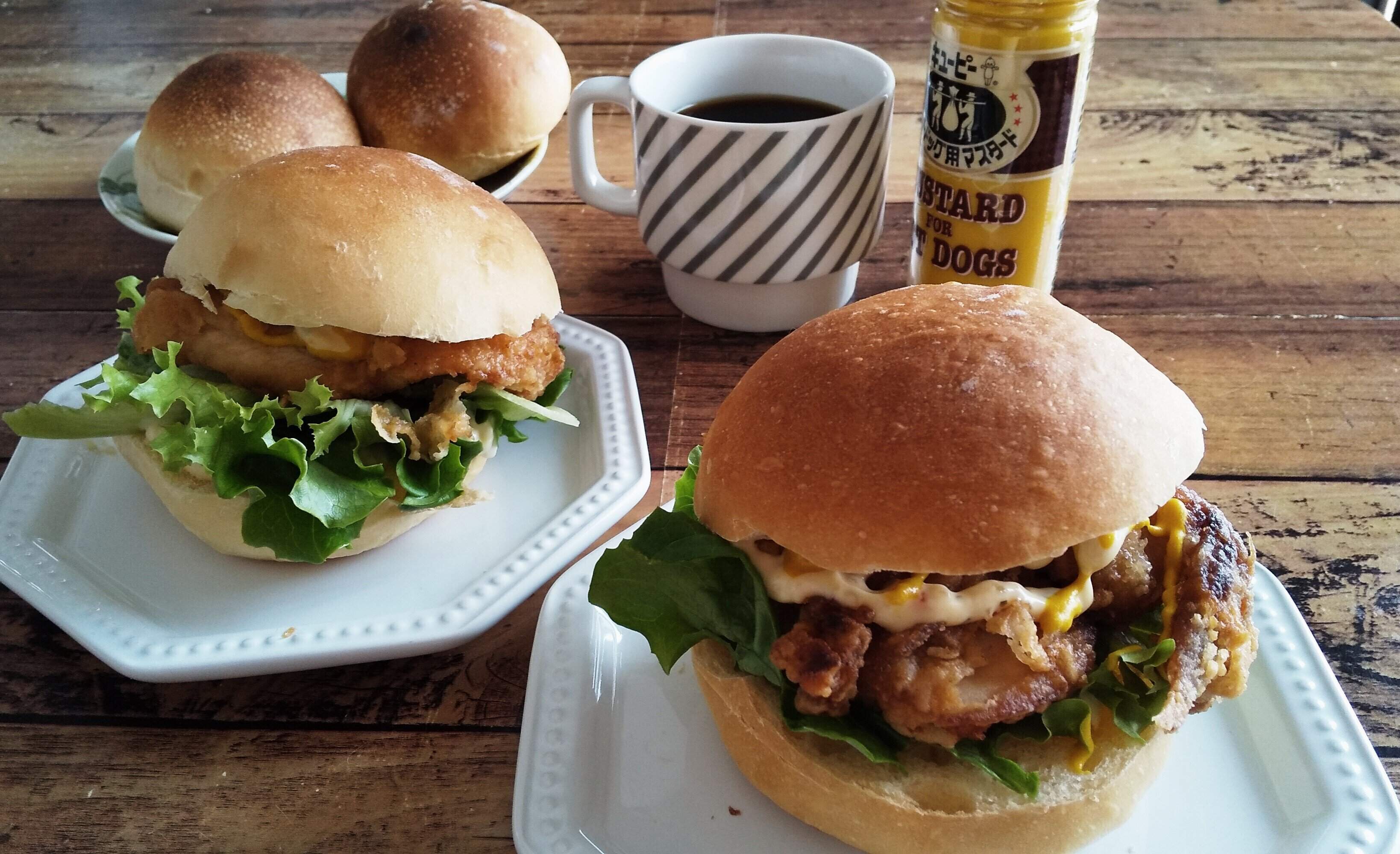 シンプルな丸パンを焼いておけば、残り物のからあげを使ってチキンバーガーに変身。