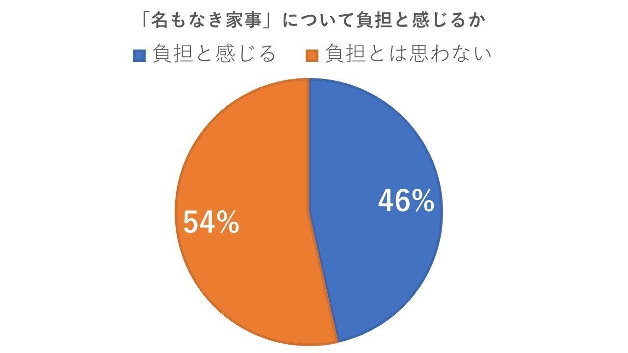 妻が担当している「名もなき家事」について、負担だと感じている人は46.5%でした。