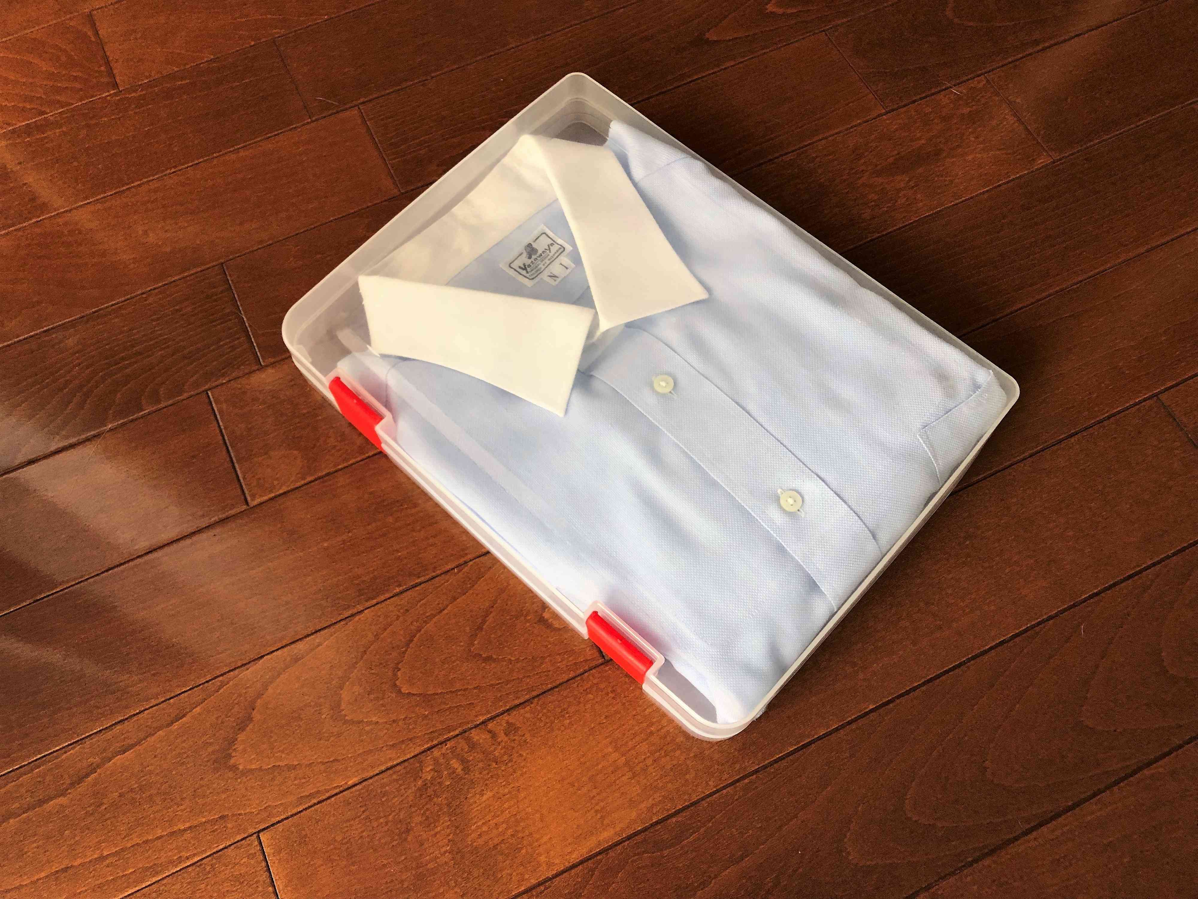 そこでおすすめなのが、文具店や100円ショップなどで手に入るクリアーケースを活用した収納術。外出先でもパリッとしたワイシャツに袖を通せますよ!