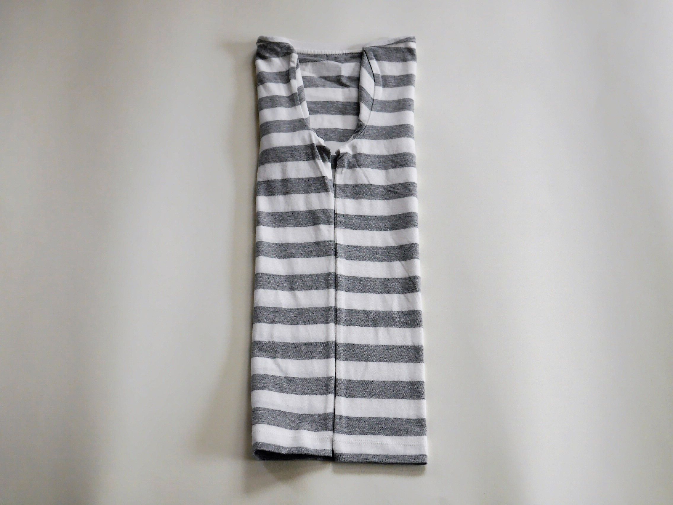 長そでTシャツも同じ手順でたたむことができます。手順4以降は、自宅の収納スペースの幅や高さに合わせて、折り幅をアレンジしてみてくださいね。