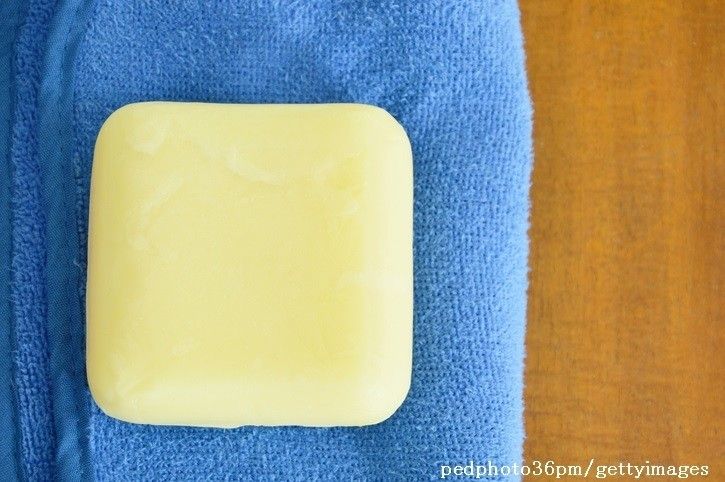 とくに気になる部分の汗じみなどの皮脂の汚れは、固形石鹸をこすりつけて汚れをもみ出すのがポイント。それでも落ちない部分には、酸素系液体漂白剤を使いましょう。