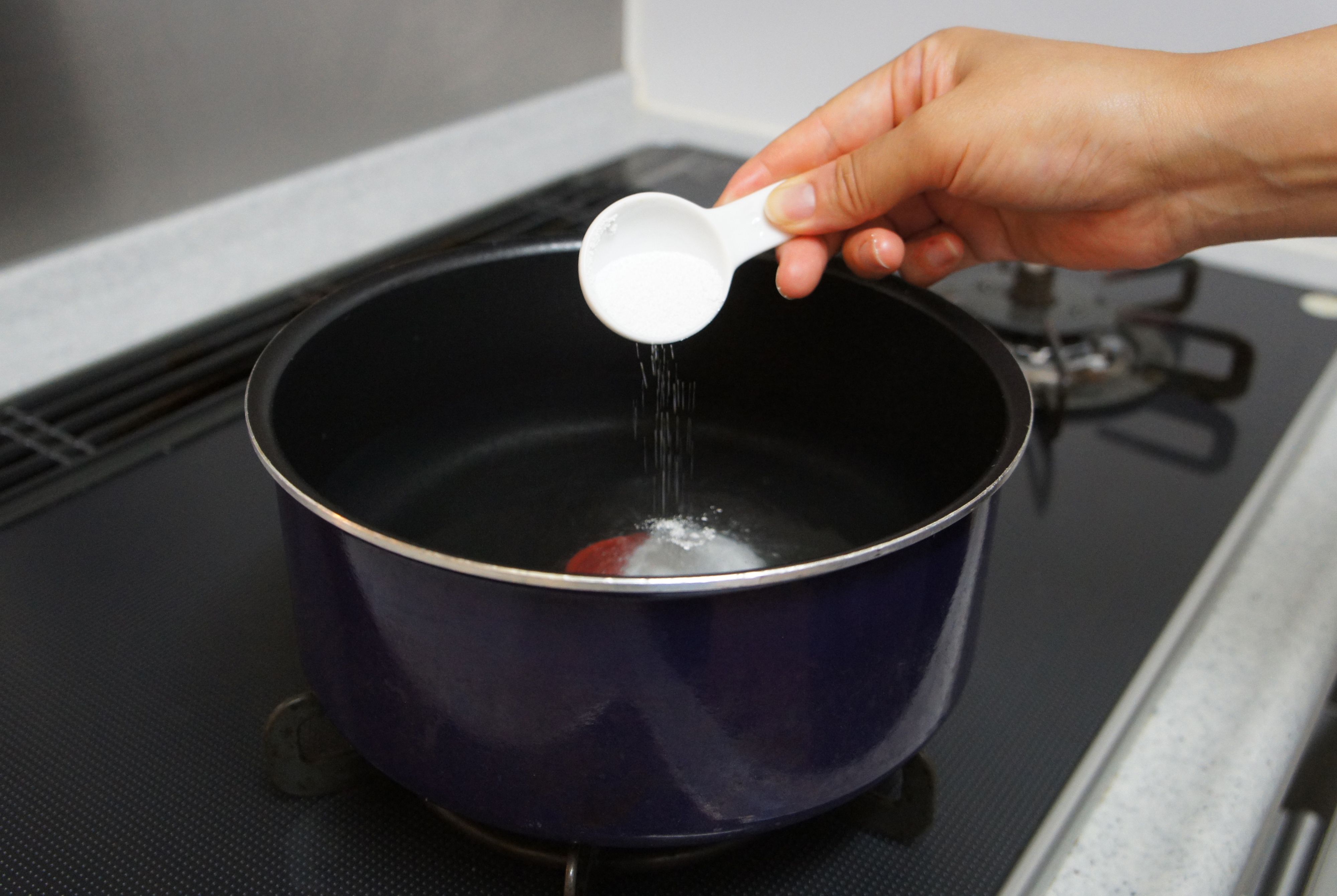 1. 鍋に洗剤と漂白剤を溶かし入れる