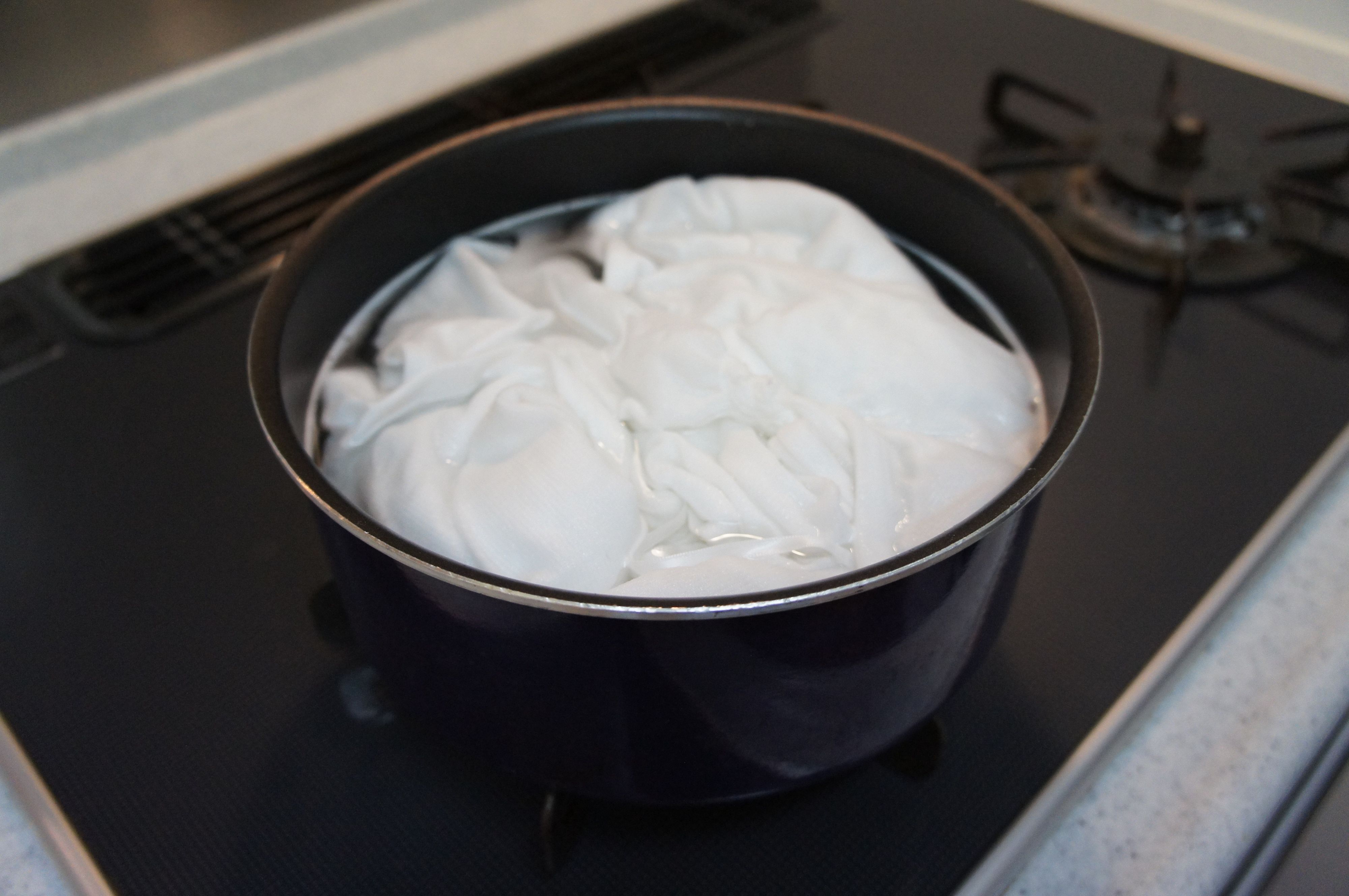 また、熱々のお湯を使うので、布類を鍋に漬け込むときはトングや菜箸を使って、くれぐれもやけどには気をつけながら行ってくださいね!
