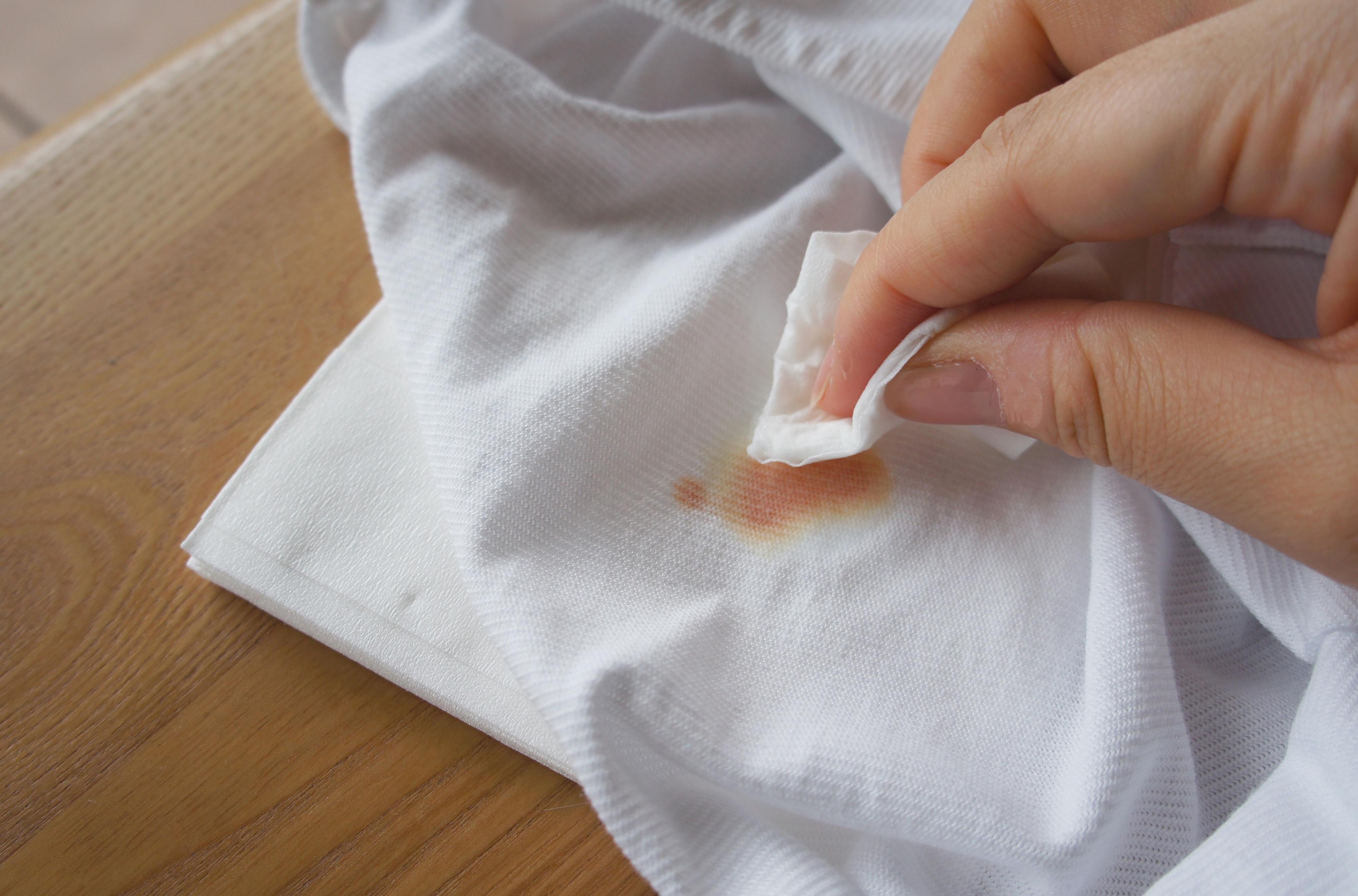 外食でケチャップをつけてしまったときは、できる範囲で応急処置をしましょう。ティッシュやおしぼりなどを使って、シミが定着する前に少しでも吸い取っておくことが大切です!