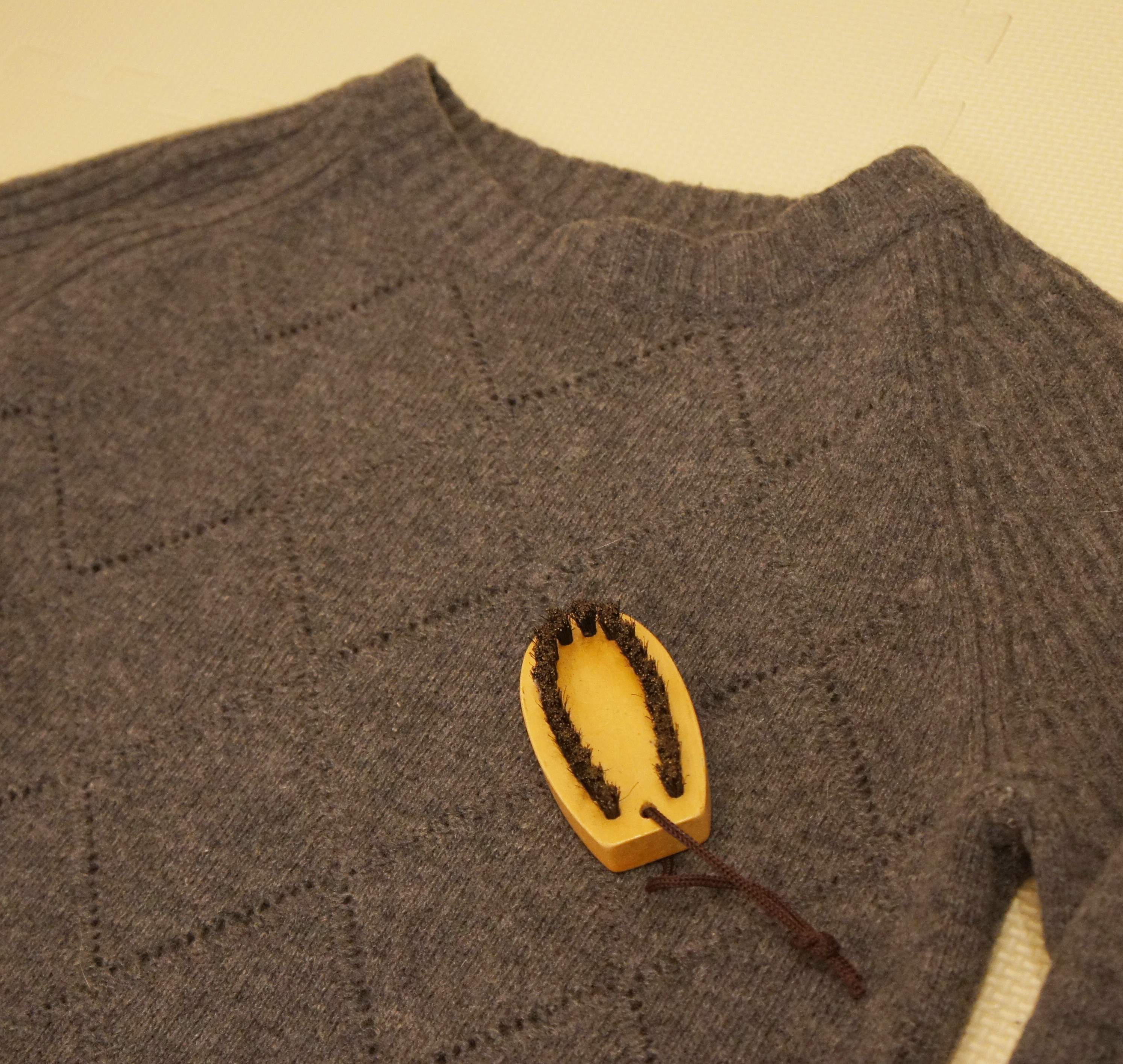 セーターを脱いだら、毛玉取りブラシなどを使って軽くブラッシングを。表面についたホコリを落とし、毛足を整えることができます。