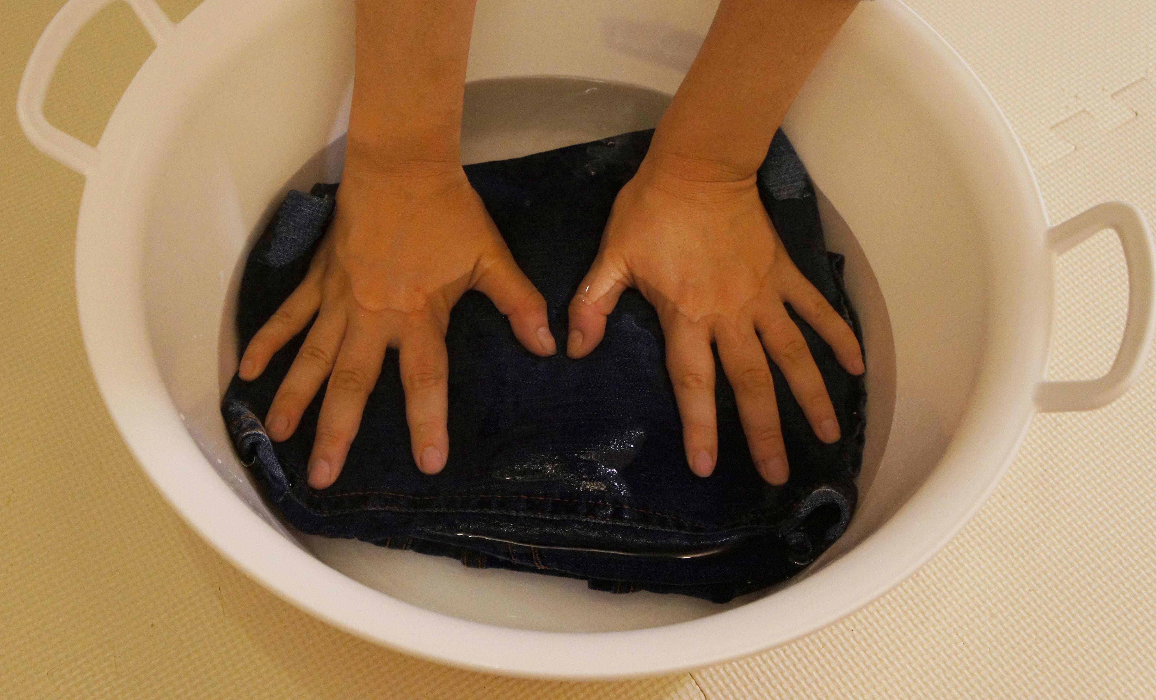 それでは、汚れたジーンズをさっそくきれいに洗ってみましょう。