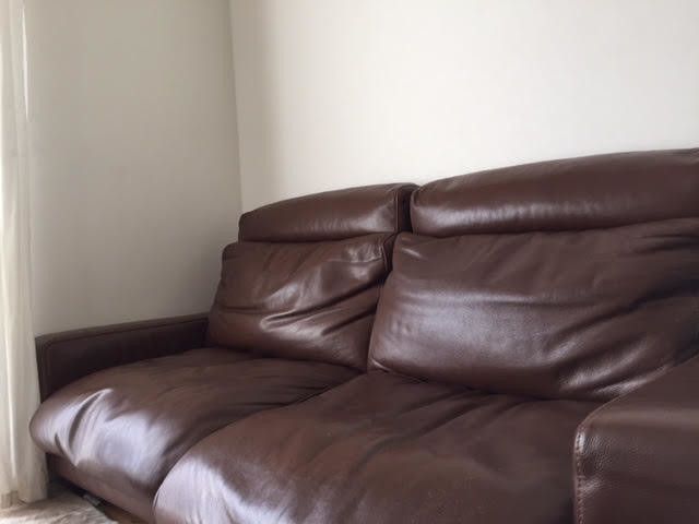 サンキュ!ブロガー木下恵梨さんの家のリビングにあるのは、無印良品の革張りソファ。家族も愛犬もみんなで座ってくつろいでいるそう。高級感がありとてもおしゃれです!