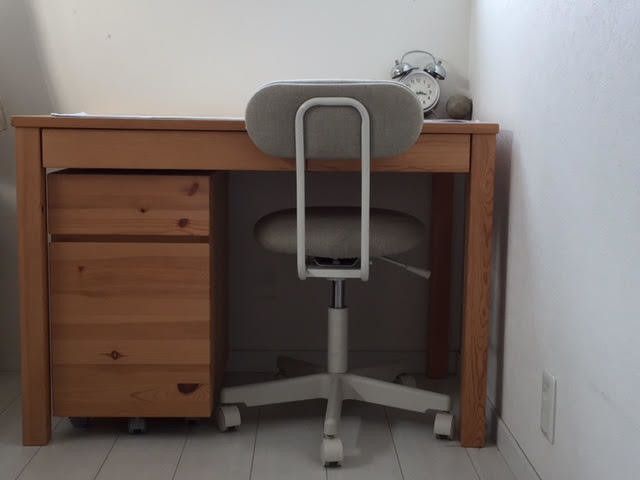 木下さんは子どもの勉強机にも無印良品をチョイス。オーク材のデスクはしっかりと丈夫でやさしい風合いも魅力! イスも無印良品のものだそう。