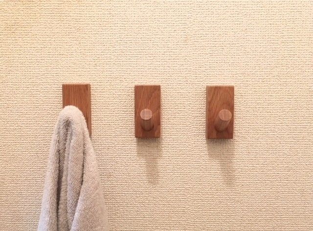 サンキュ!ブロガーjunkaさんの一押しは、「壁に付けられる家具」シリーズのフック。洗面所の壁に取り付け、バスタオルなどを掛けているそう。
