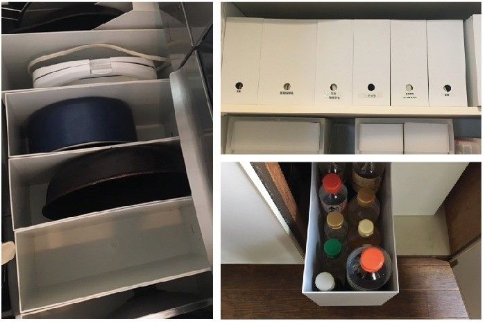 ミニマリストの間で「収納グッズの最強」ともいえるのが無印良品のファイルボックス。tomoyoさんはキッチンのフライパンや鍋、また家中の書類を収納するのに活用。junkaさんは料理で使う調味料を入れるのに使っています。まさに使い方は無限大!