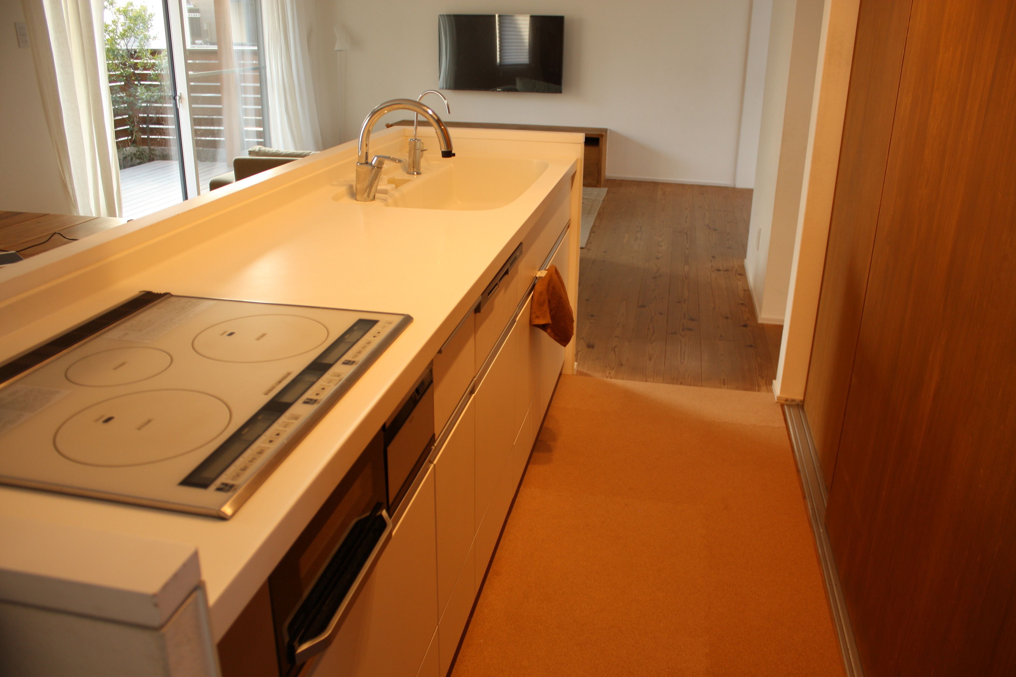 サンキュ!ブロガーjunkaさんのお宅は、壁付けでオープンタイプのキッチン。人目につきやすいからこそ、物はなるべく引き出しや戸棚にしまってスッキリさせています。
