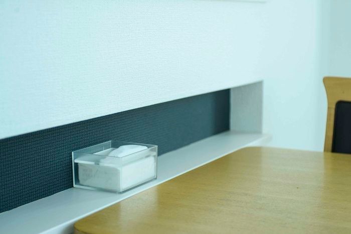 以前はダイニングテーブルのわきに、何でも置いてごちゃごちゃに。「でも、ここで必要なのはティッシュだけと気づき、ほかは収納場所を決めて移動。物がないとホコリが目立つので、拭き掃除の習慣ができました♪」。ラクしてキレイを実現しています。