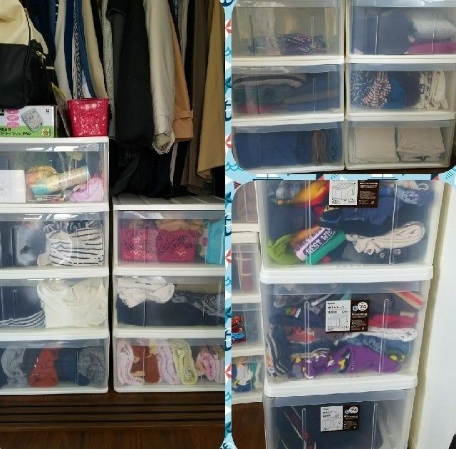サンキュ!ブロガーなっちゃんさんは、用途別に収納を使い分け。タンスに冬服や年中着られる服を入れ、衣装ケースに夏服や下着類など薄手なものを入れています。用途別だから入れ替える必要なし! 出し入れが便利になる収納方法ですね。