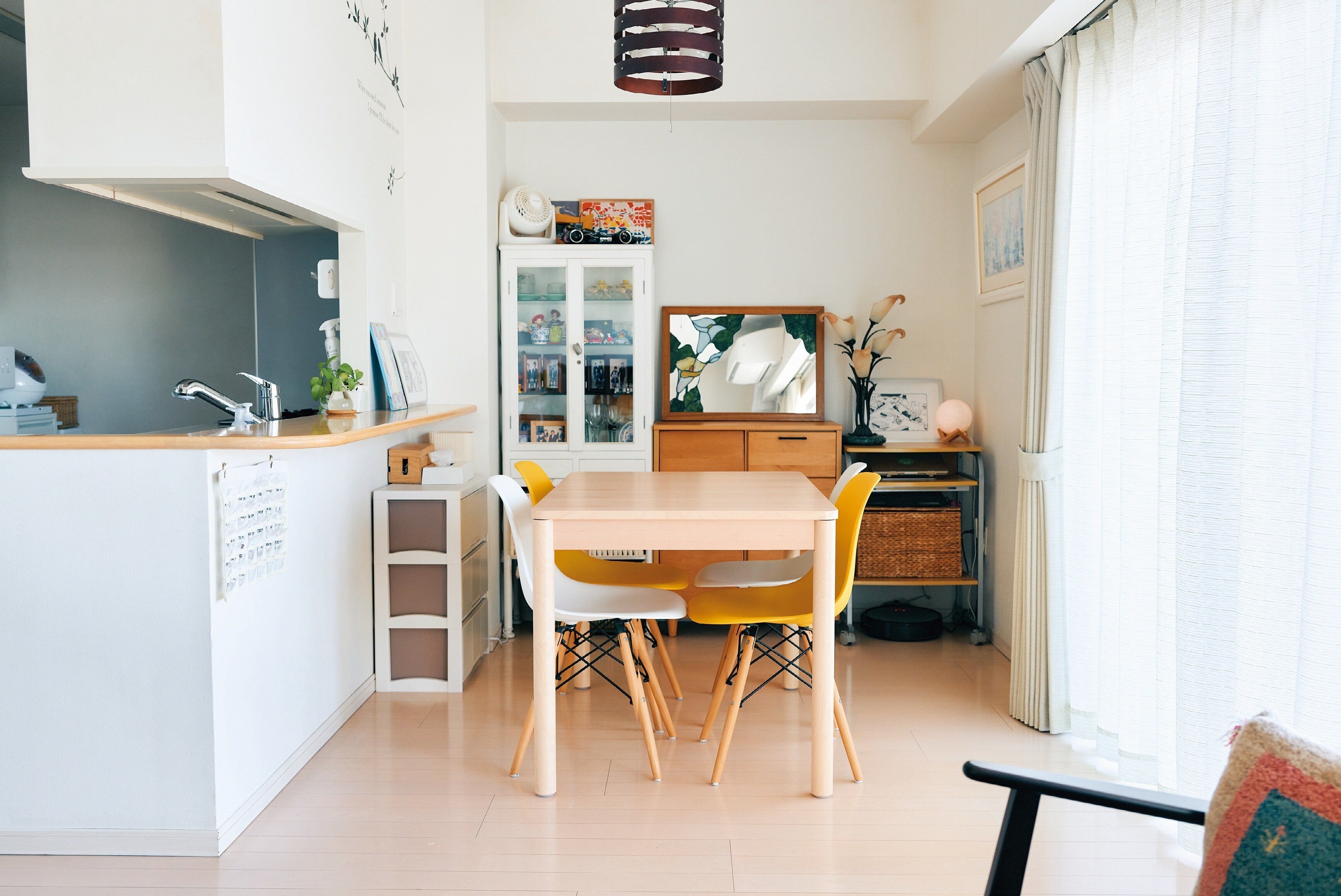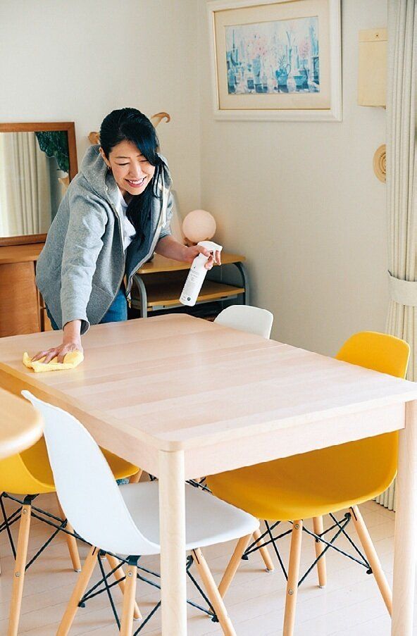 息子たちが成長して夫のヒロくんと2人の食事が増えたから、ひと回り小さいテーブルにチェンジ。1日に何度も拭くから面積が少しでも小さいとラクなの。