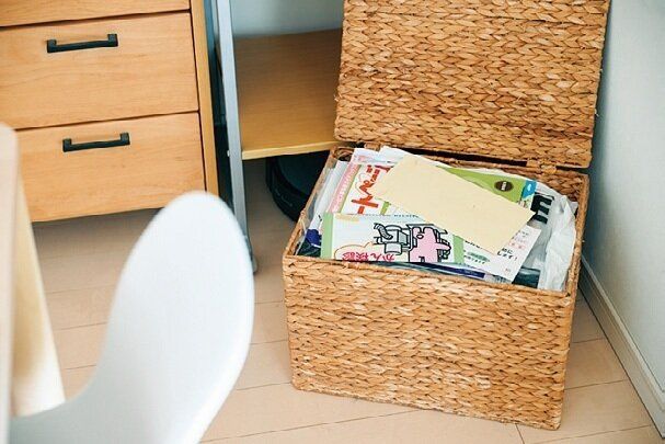 書類やDMなどあとで整理したい紙類を逃がす場所がここ。1カ所に集めて蓋をしちゃえば散らからずスッキリ!月1回まとめてチェックするよ。