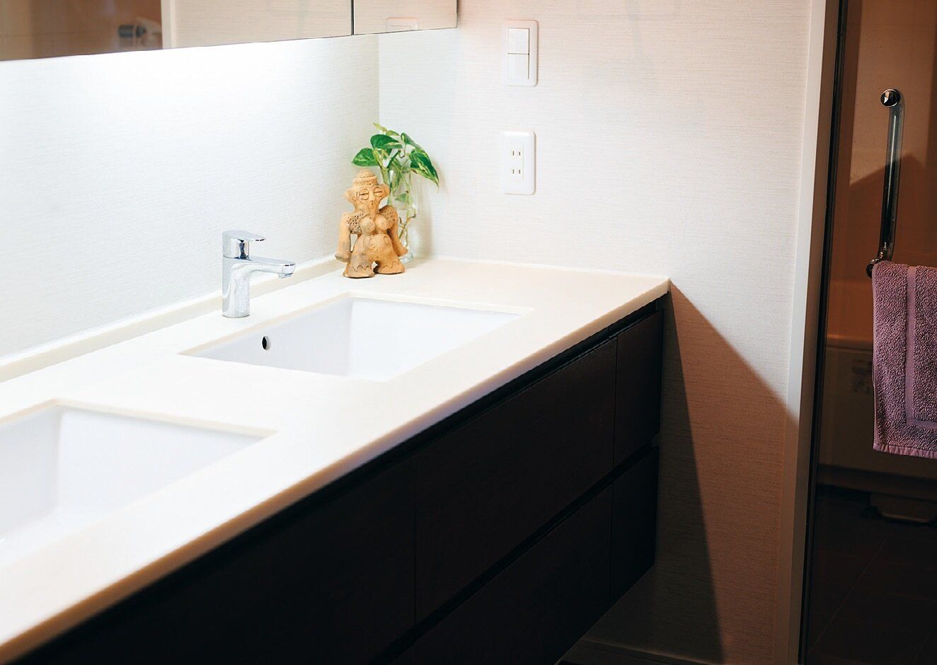 掃除は気づいた人がササッと。モノが少ないからラクだし、自分がきれいにしたいという思いでするから、やらされ感はゼロ。ゴチャついていると掃除をする気になれないものね。