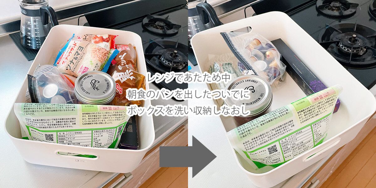 電子レンジのあたため中、ケトルでお湯を沸かしている間、など、家事にはわずかな隙間時間があります。そのときにさっと掃除したり、出しっぱなしになっていたものを片付けるだけ。