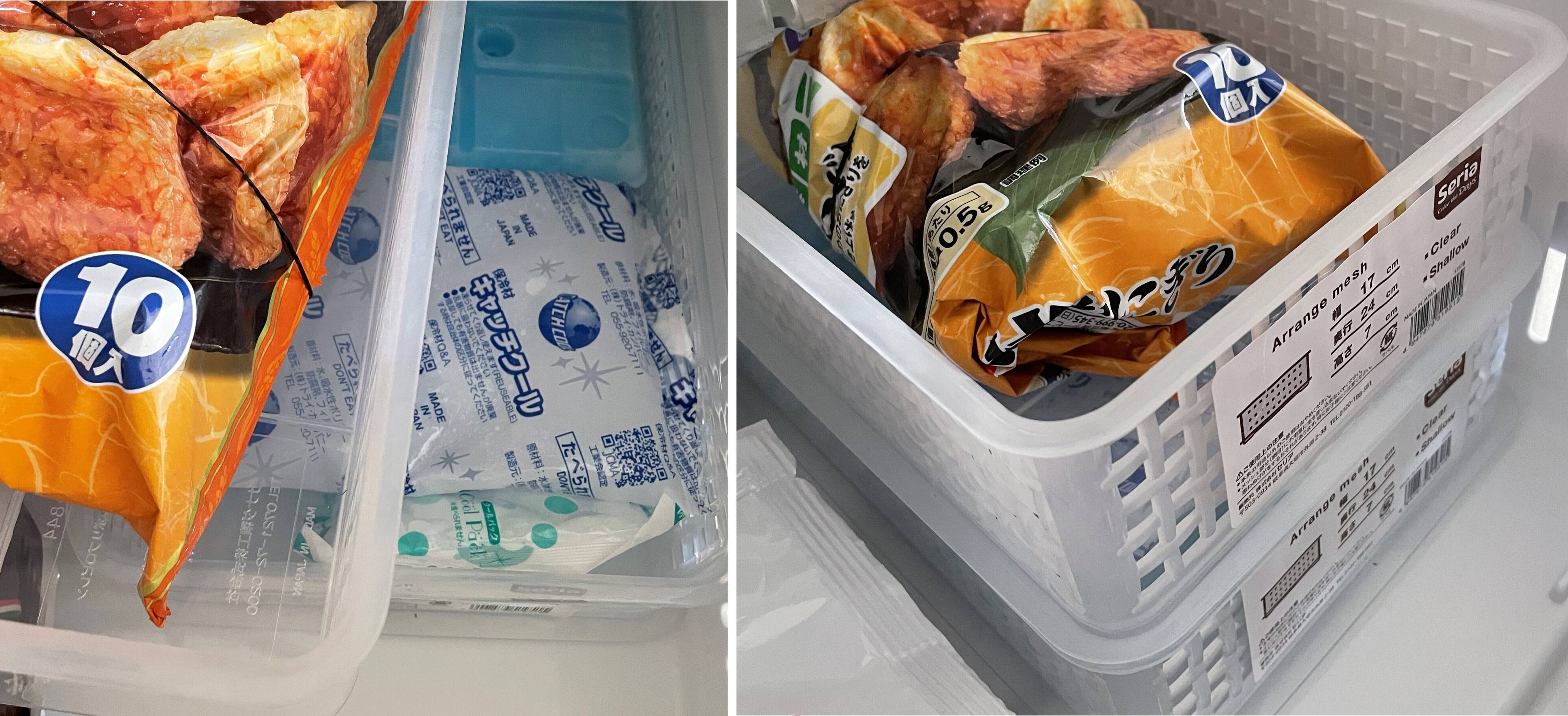 例えば冷凍室。下の段には使う頻度の少ない「保冷剤」を入れ、上の段には良く消費するものを入れるのも良いでしょう。