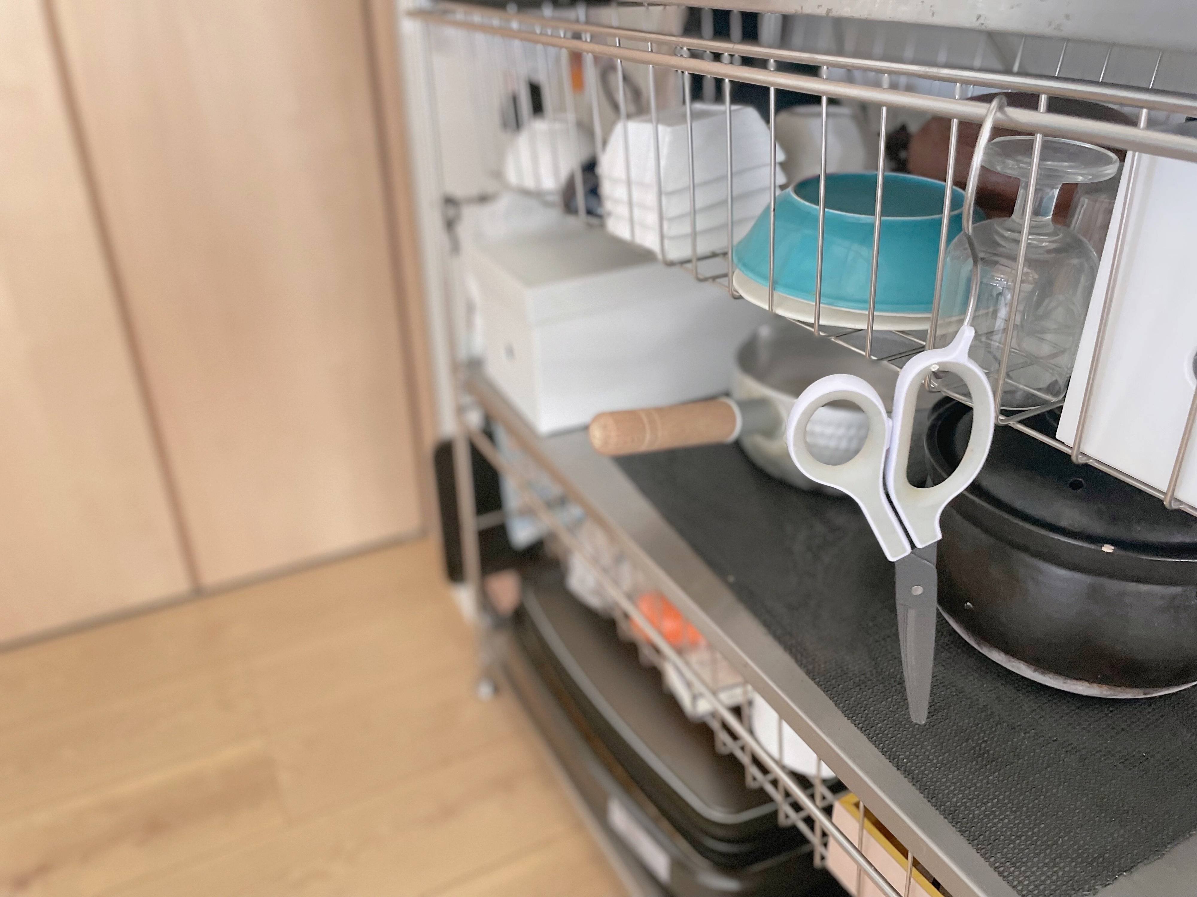 一日に何度も使うこともあるハサミは、S字フックに吊り下げるだけでOKです。