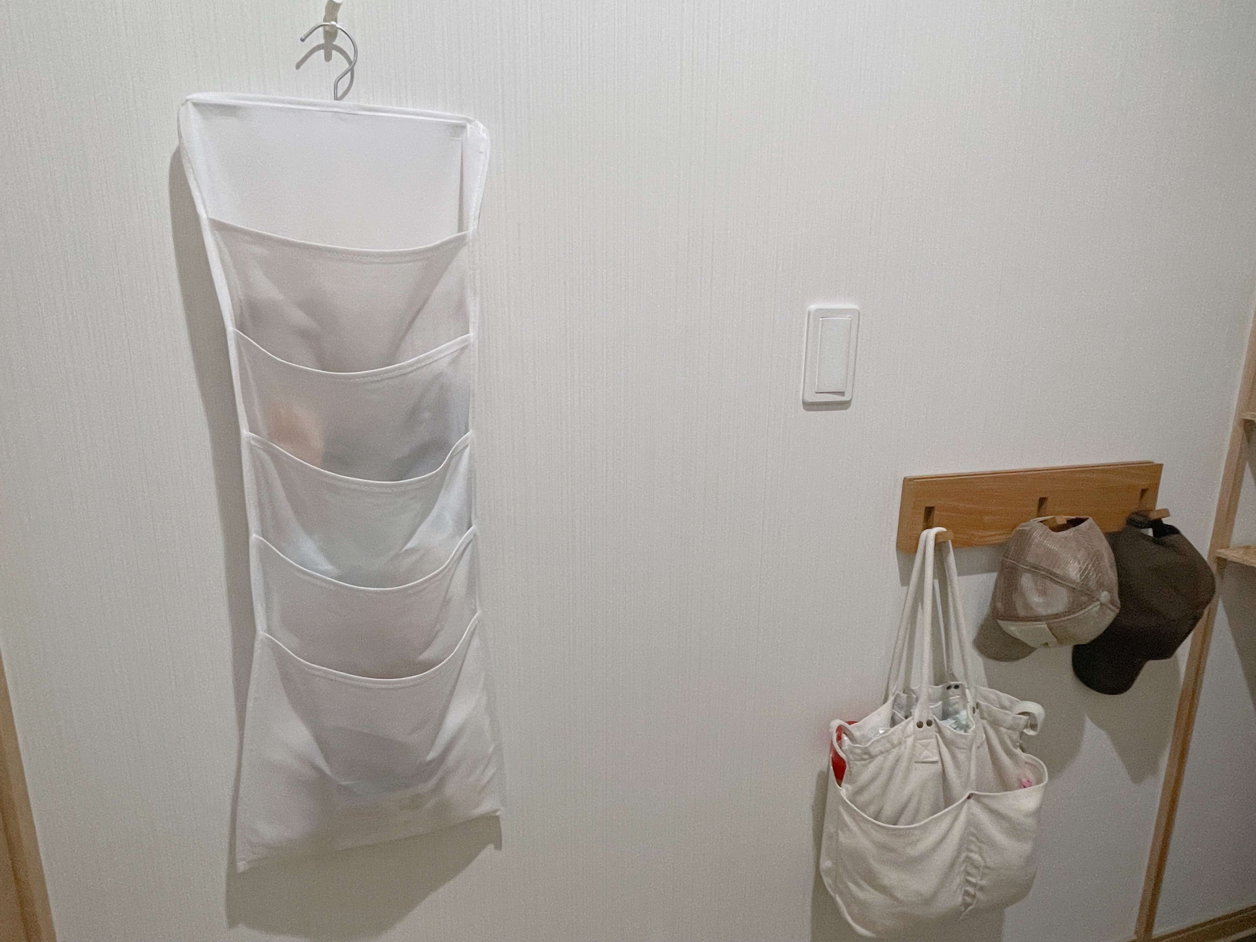 玄関にフックを取りつけておくと、「夏は帽子」「冬はアウター」を引っ掛けておくことができるので、外出時にもたつくことがありません。