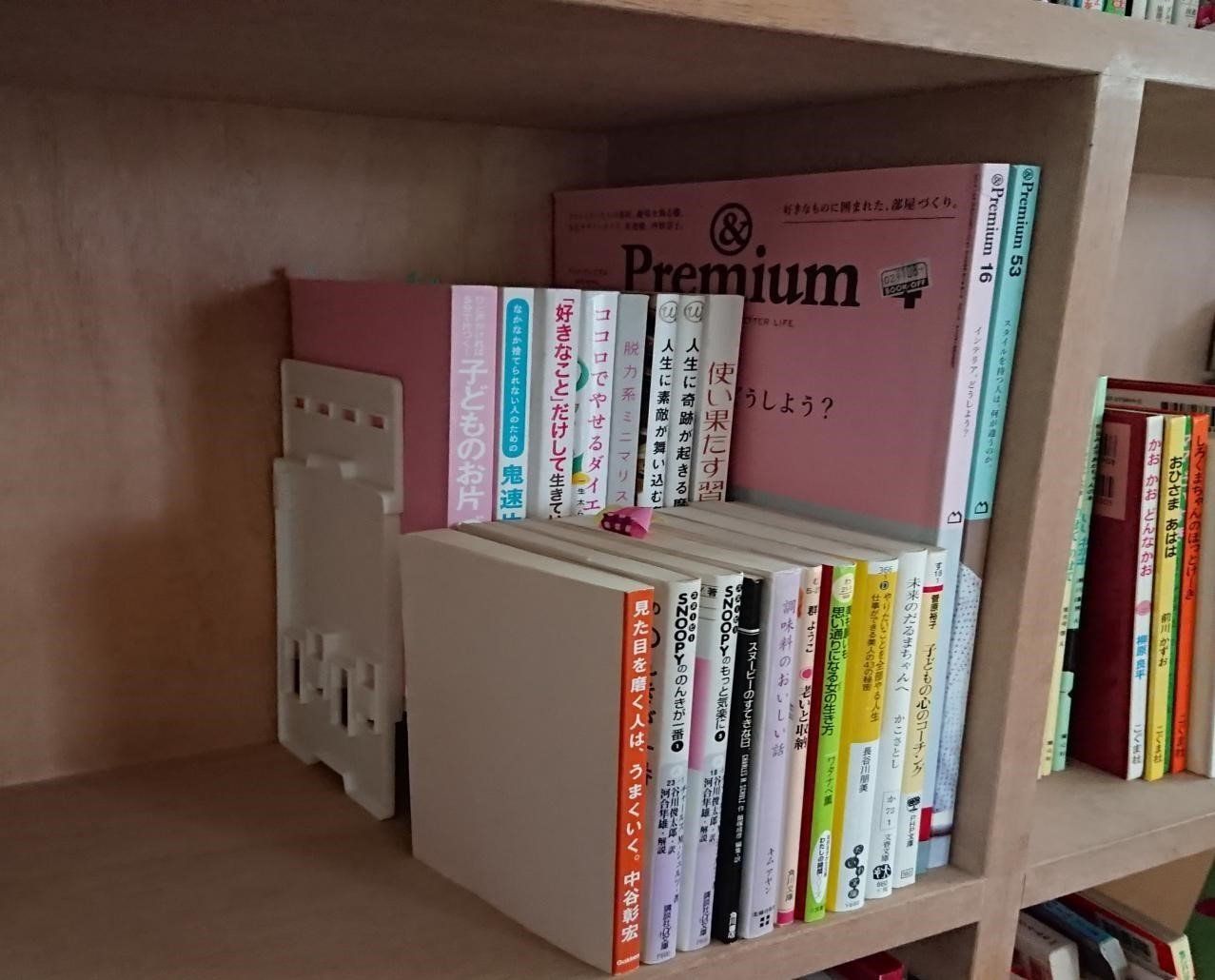 雑誌サイズの棚に、奥に単行本、手前に文庫本が収納できました。