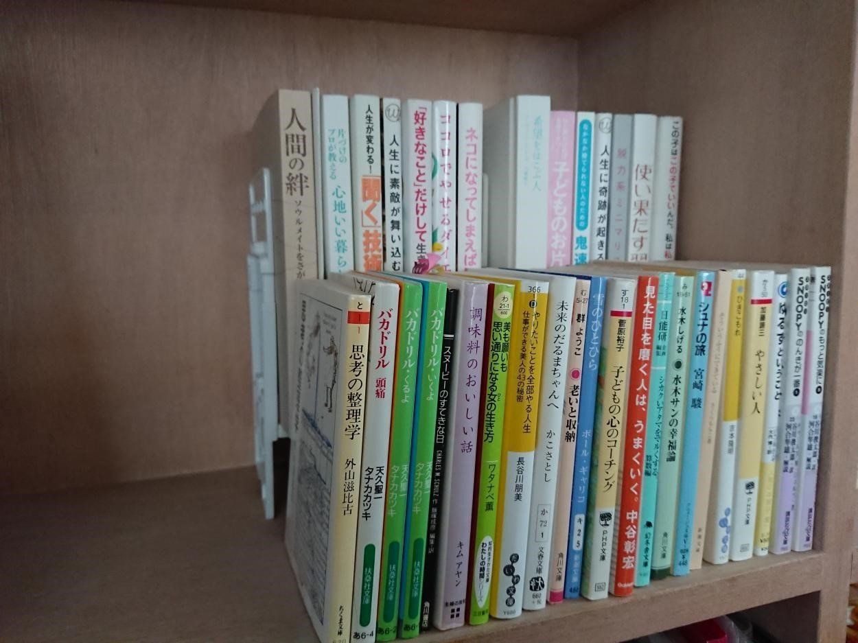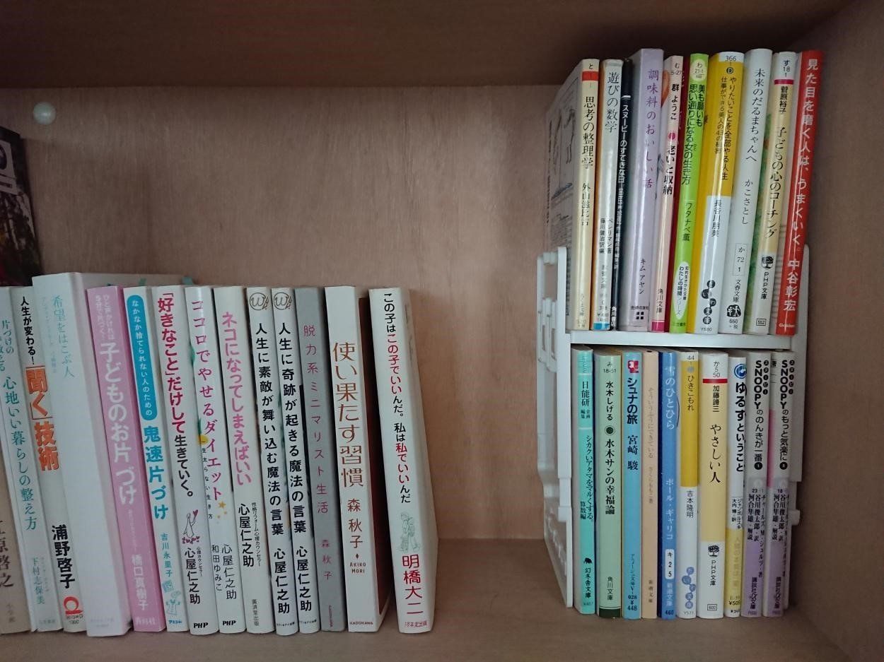 文庫サイズの棚で入りきらずに横になっていた本も、雑誌サイズの棚に移動したらこのとおり、取り出しやすくなりました。