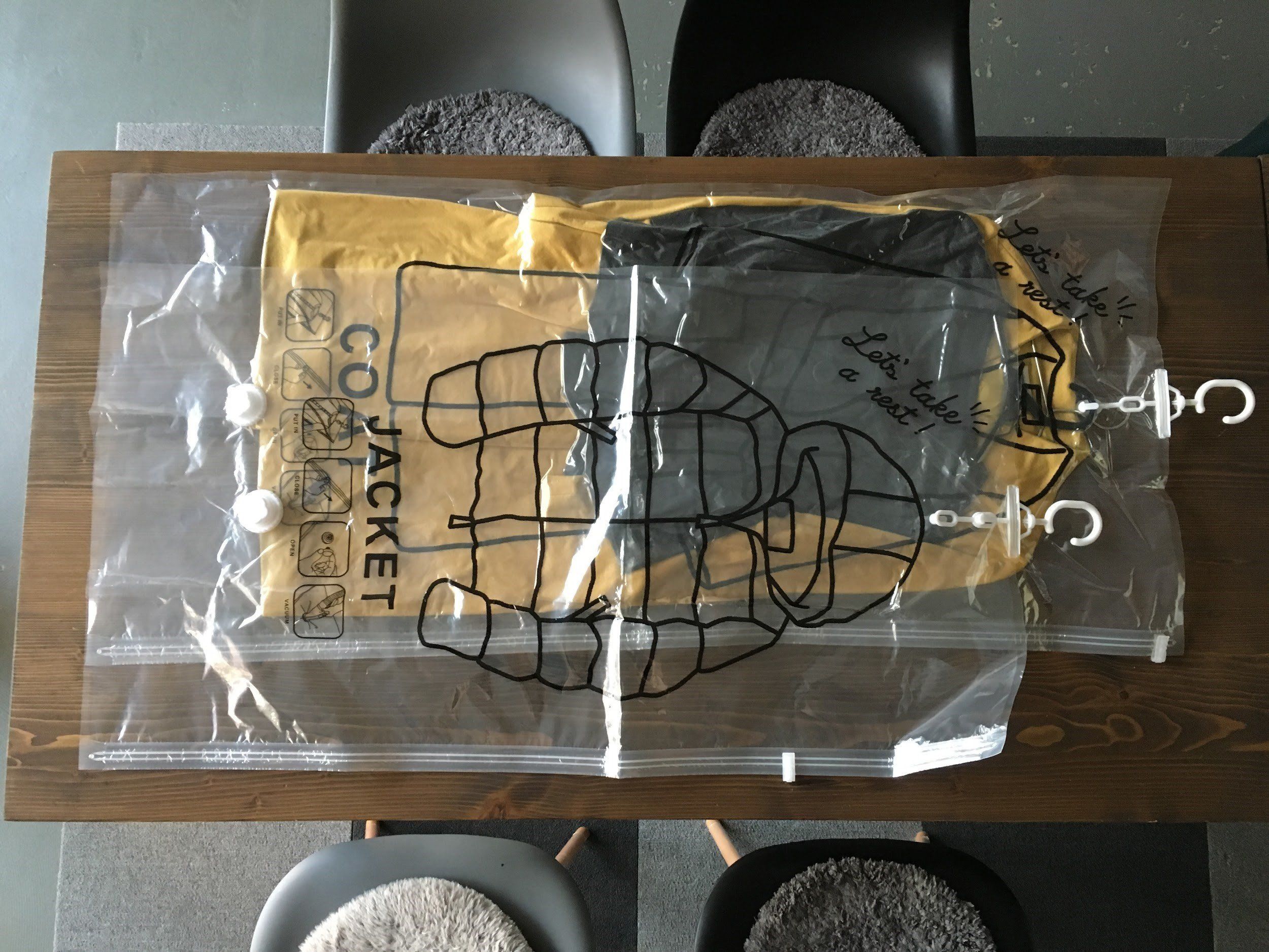 以上、3工程で圧縮は完了。コート1着を圧縮するためにかかったのは3分ほどでした。