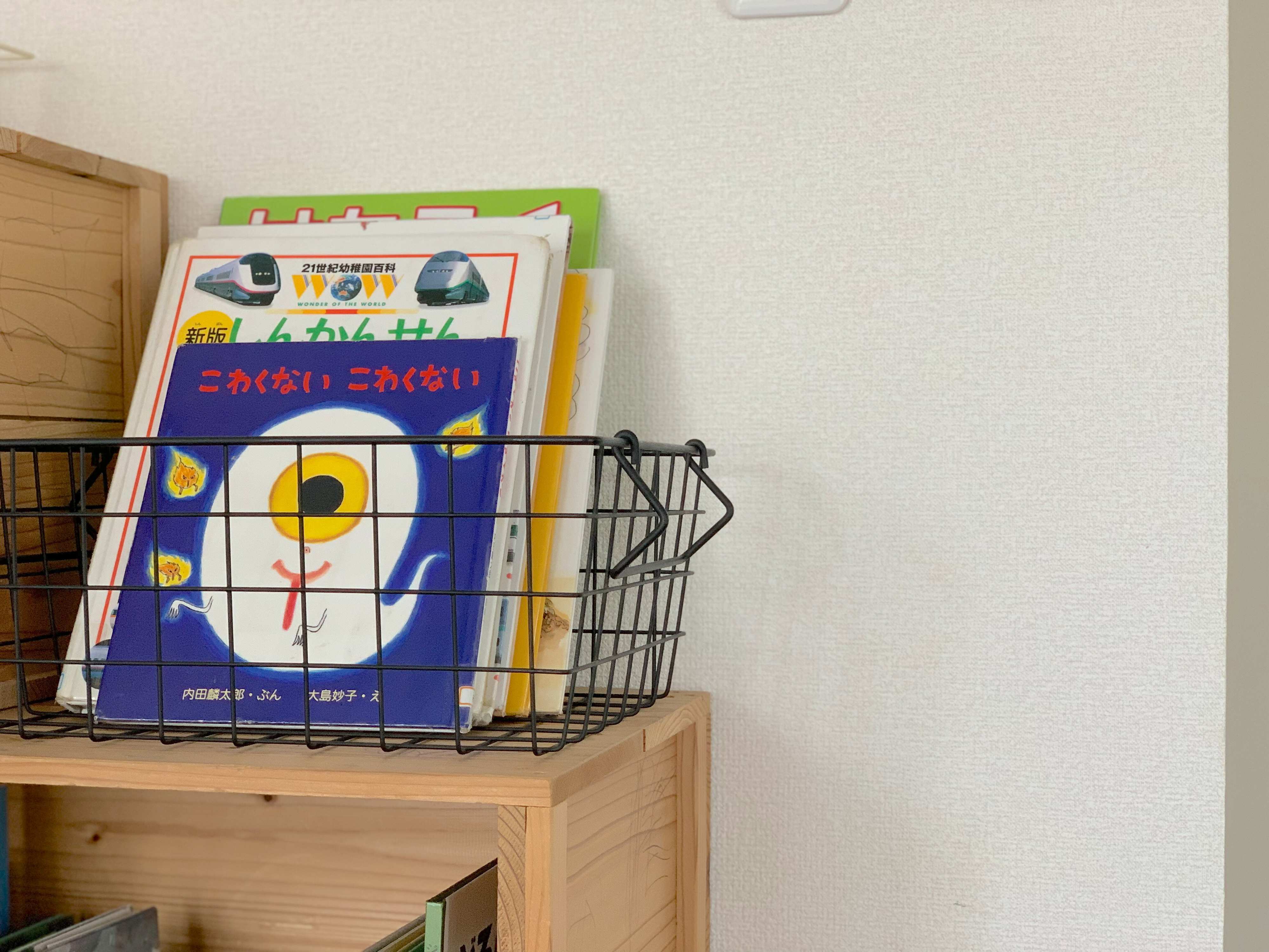 わが家は、図書館の本専用のカゴに入れ、出しっぱなしにしています。出しっぱなしになっていると、図書館の本を優先的に読んだり、返却時の準備がスムーズになったりとよいことばかりです。