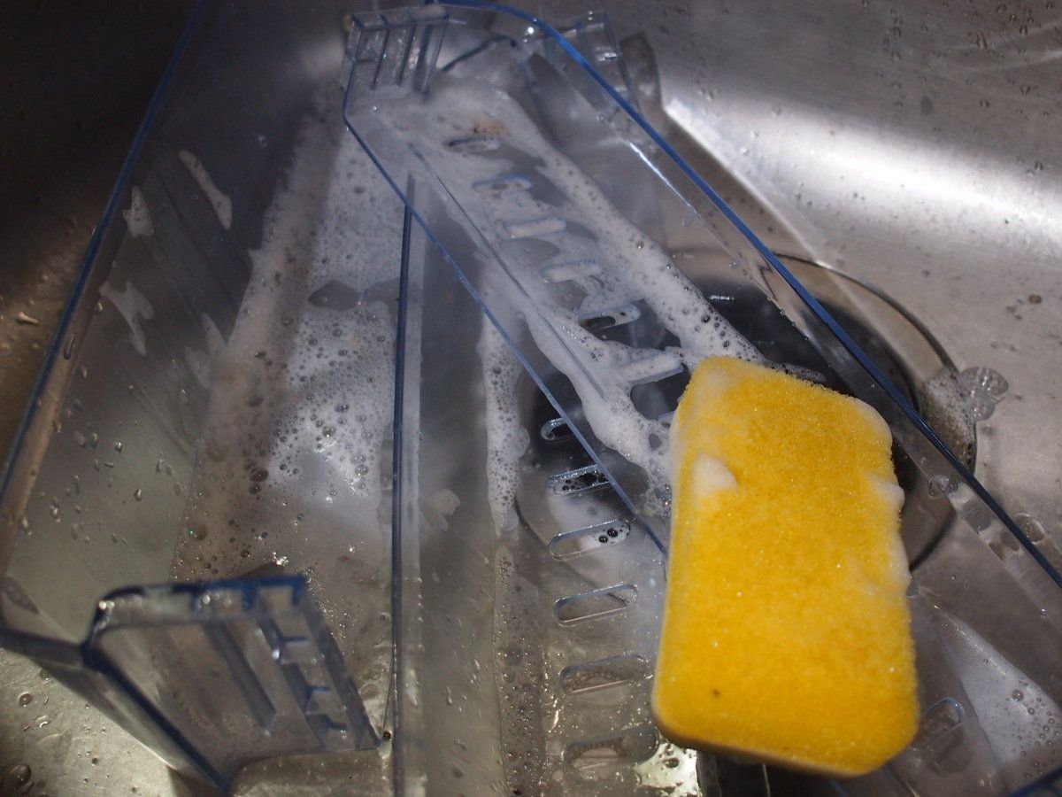 取り外した部品は、バケツにぬるま湯を入れてクエン酸を入れたものにつけ置きしておくといいでしょう。さほど汚れていなければ、食器用洗剤をつけてスポンジで洗い、乾いた雑巾で水気を拭き取りましょう。