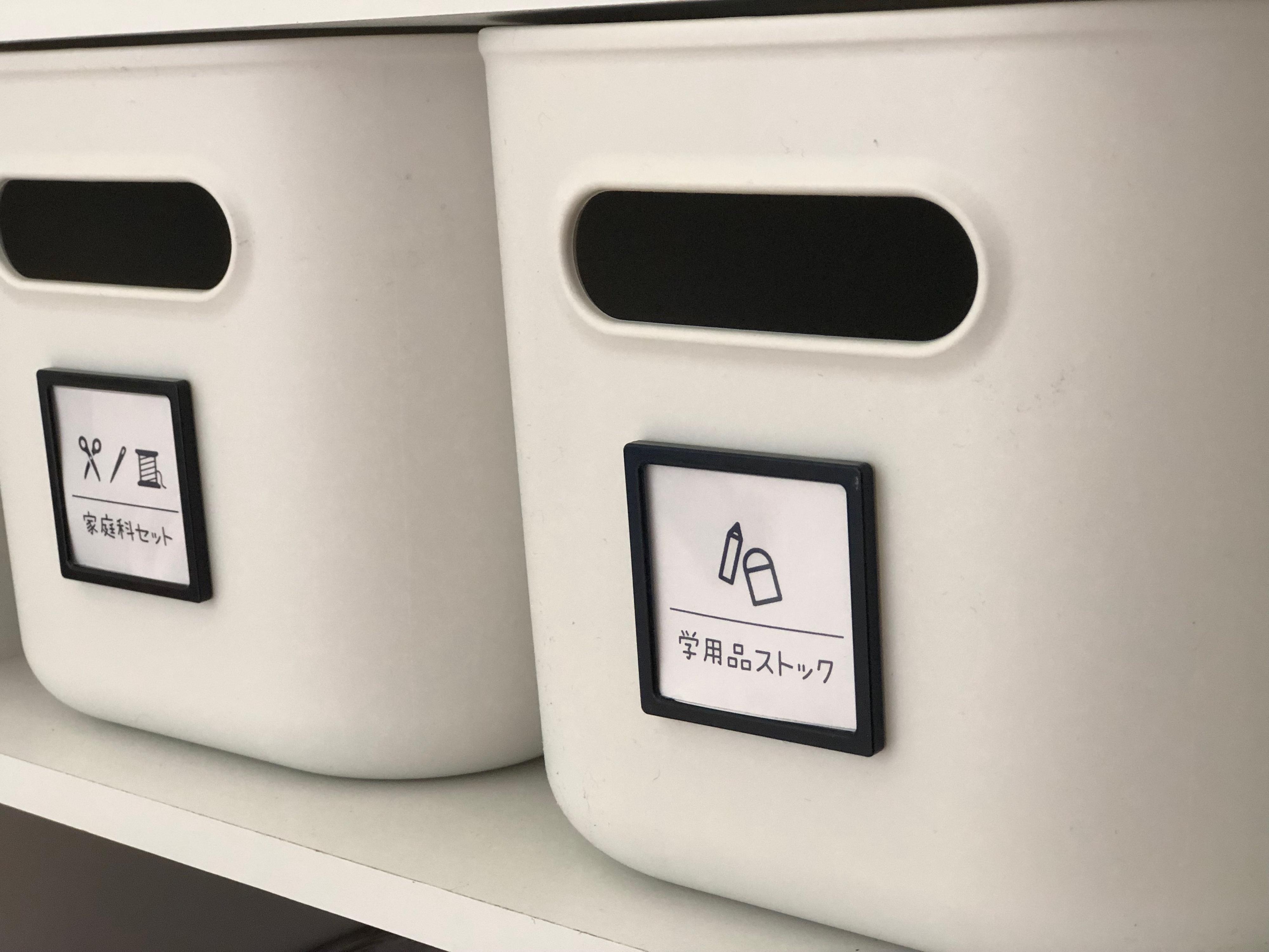 ラベリングも有効です!定位置を決めたらラベルを貼りましょう!そうすることで「今日くらいはいいかな~」とルール違反をしそうな人も、ルール違反をしにくくしてくれます。絵や文字を上手に使ってつかうひとみんながわかりやすい表記にしましょう。