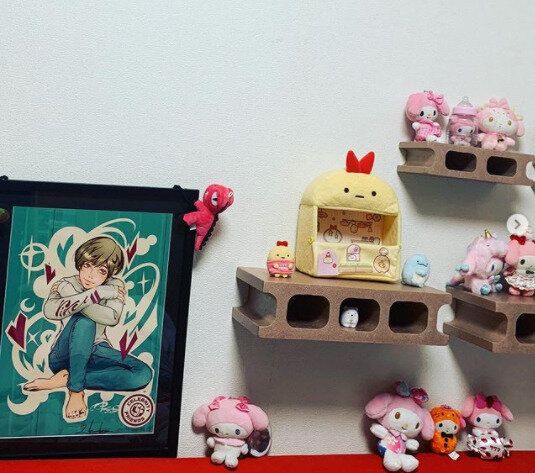 お気に入りのぬいぐるみたちが並ぶ、まさに癒しのお部屋を作成!ぬいぐるみサイズの棚にぎっしりとコレクションが並べられています。個数が多い人におすすめです。