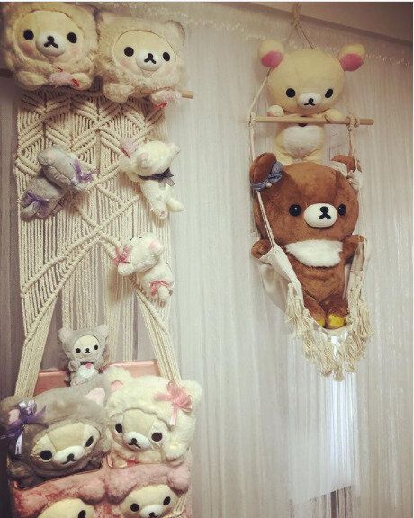 手づくりの「マクラメハンモック」をぬいぐるみ収納にするアイデア。浮かせる収納もでき、特別場所を用意しなくていいのが、うれしいポイントです。収納をしながら飾ることができるため、一石二鳥ですね。タッセルをつけると、よりインテリア感の強い、おしゃれな印象に。飾りたいぬいぐるみの大きさに合わせて、つくれるのも魅力ですね。「飾ったまま収納をしたい、だけど場所はとりたくない!」という人は、ぜひ「マクラメハンモック」を使っての、ぬいぐるみ収納がおすすめです!