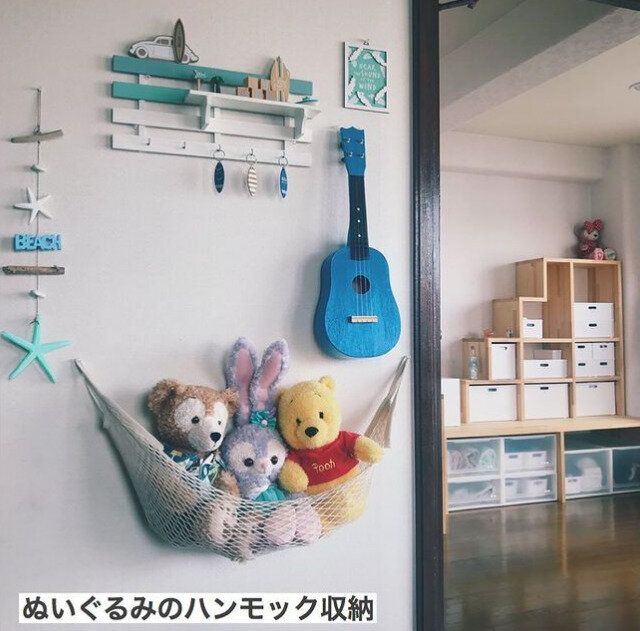 お気に入りのぬいぐるみたちはおしゃれなハンモックなどを活用してぶらさげ収納することでよりかわいくディスプレイすることができます。いつでも見える場所にディスプレイすることでより愛着が出ること間違いなしです。