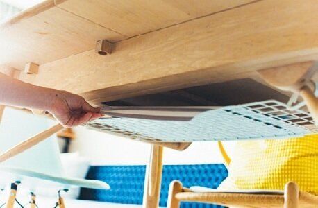 - 「ごはんだよ」ですぐ出せる!テーブル下のランチョンマット置き場