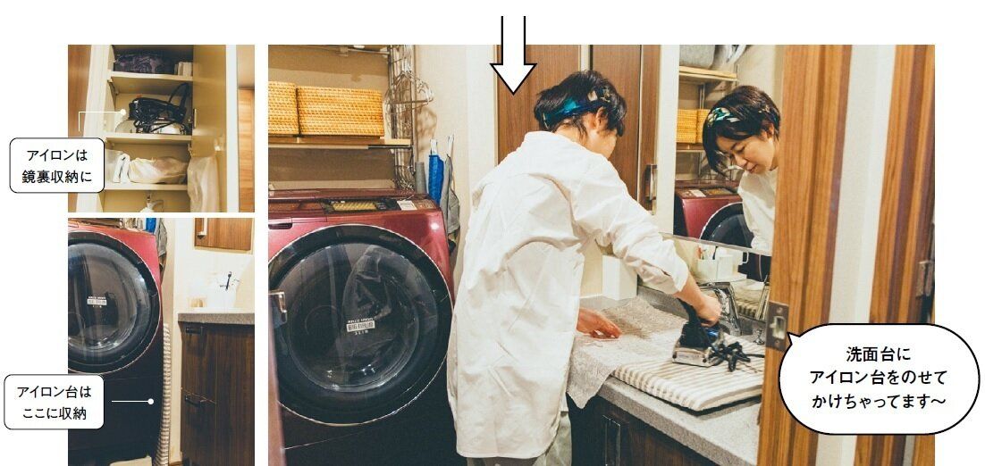 洗面所で洗濯、乾燥、アイロンがけまで全部やればいい。
