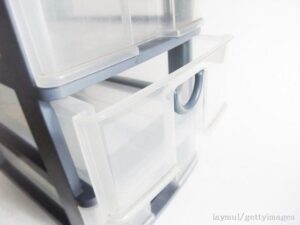 立てて置けるすっきりとした収納ボックスは見た目もすっきり。