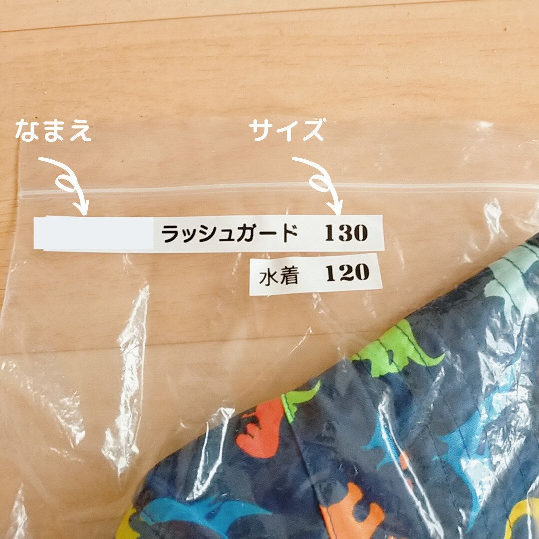 我が家では、水着は大きめを買うようにしているので、2年くらいは使えます。ラベリングしておけば、イチイチ中を確認しなくてもサイズがわかりますね。