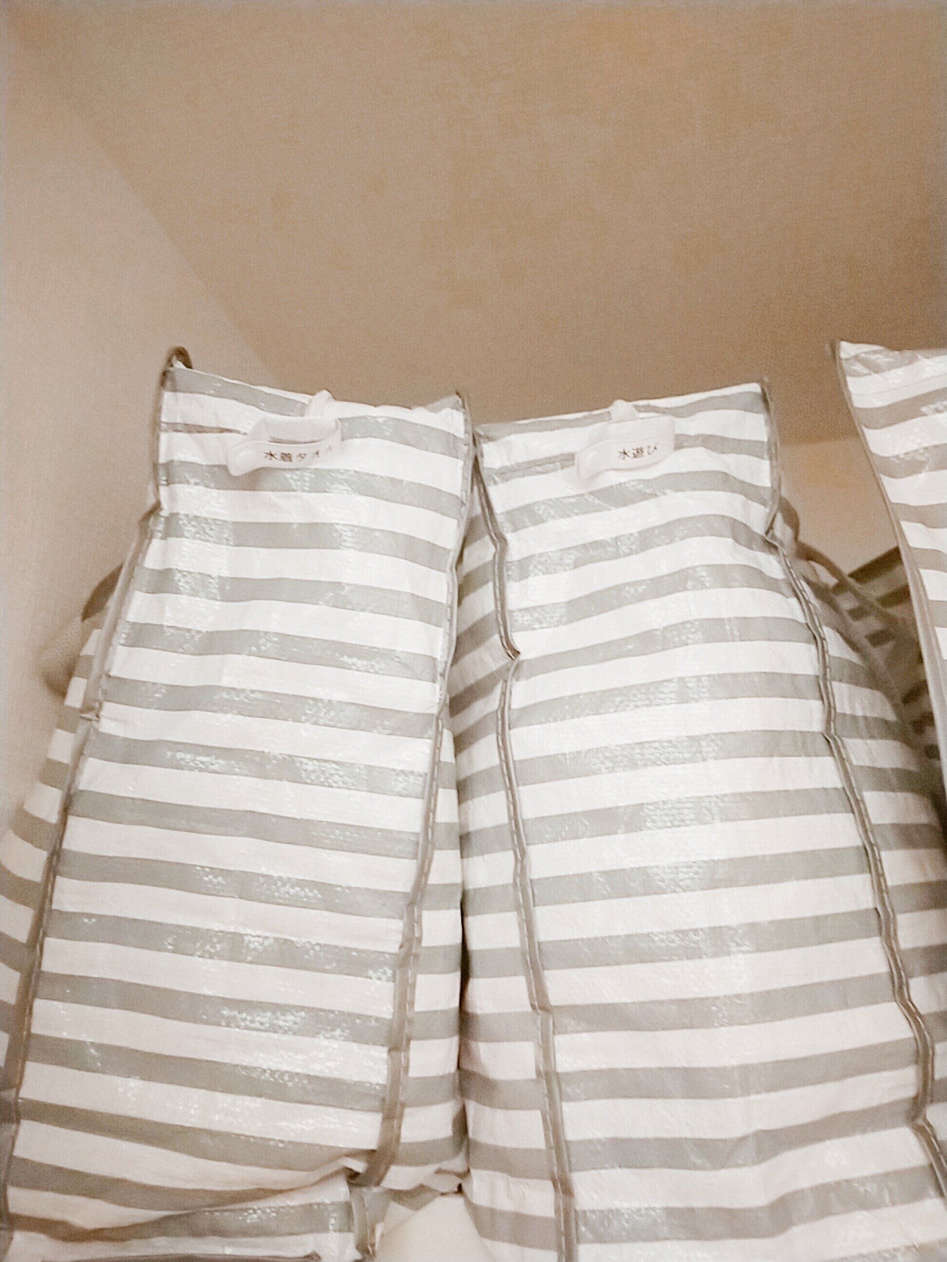 我が家ではプールや海には家族みんなで行くから、水着は個人で管理せずに、一括収納しています。各自の部屋で「水着がなーーい!」なんてことがないように。この袋を出せばあとは自分たちで準備できますね。