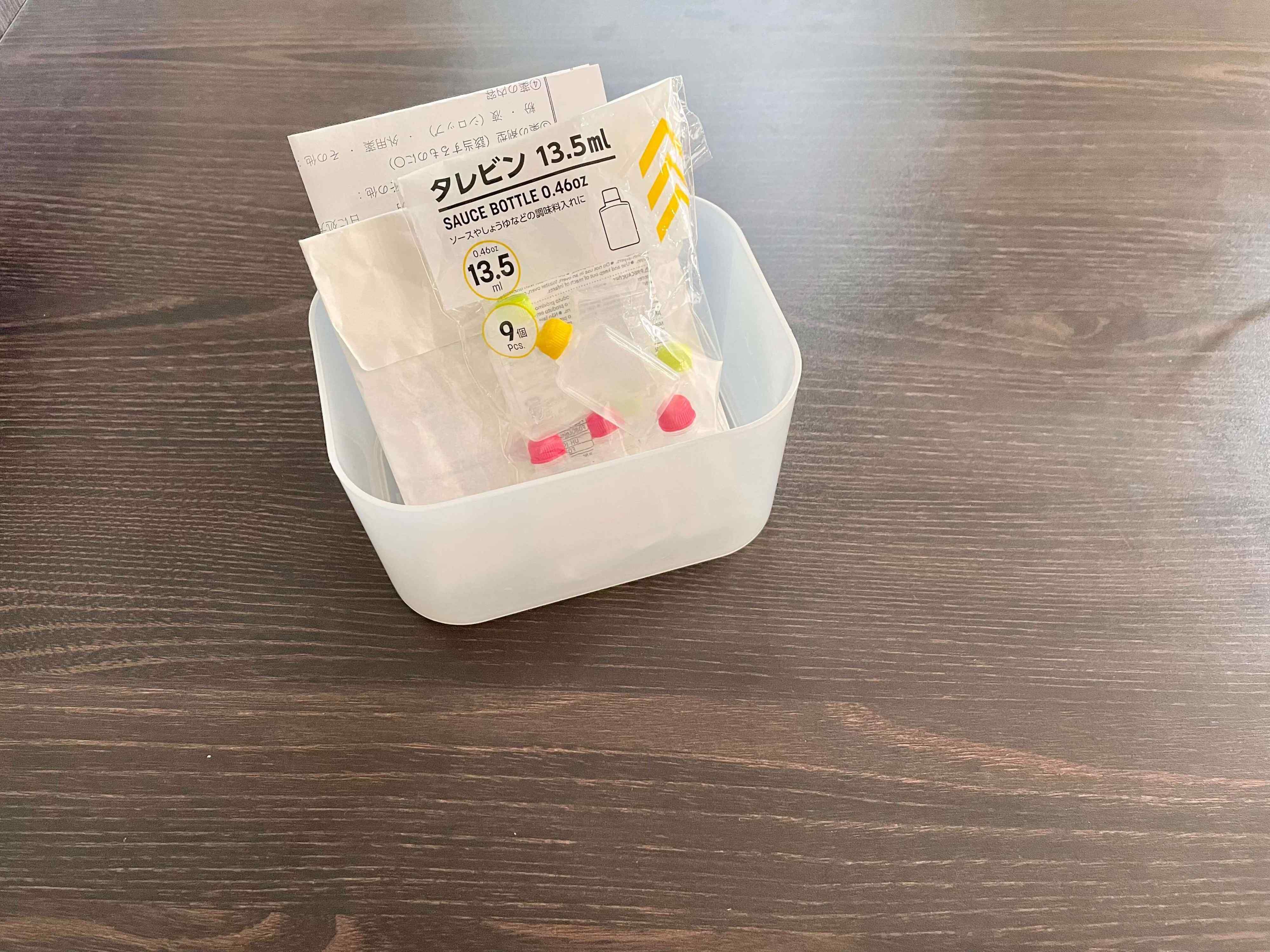 子どもの薬の場合は、園に持っていく投薬書をいれたり、水薬は一回分の量を持っていくので、タレビンもいれておきます。