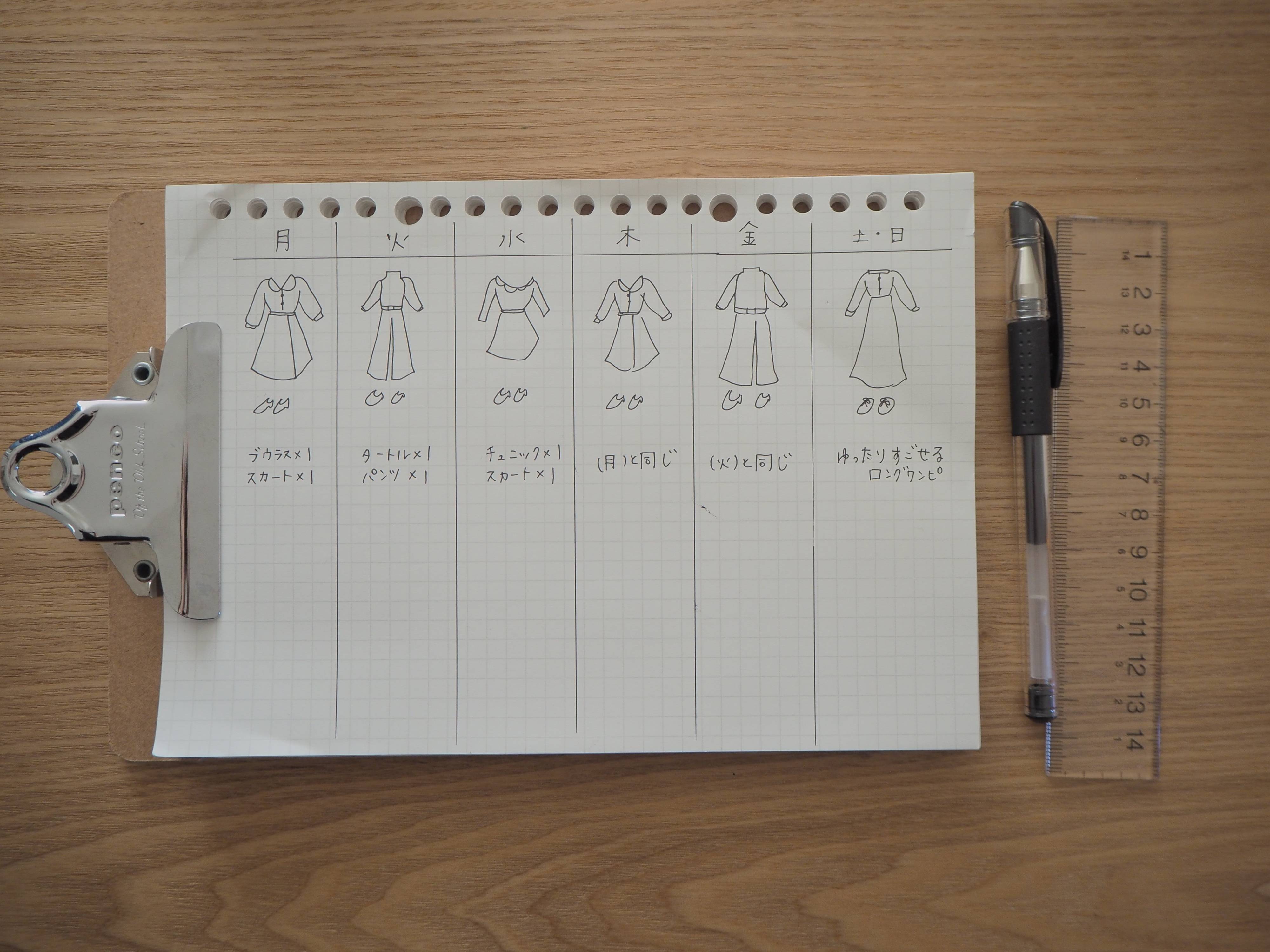 ステップ1「理想の1週間コーデを紙に書き出す」