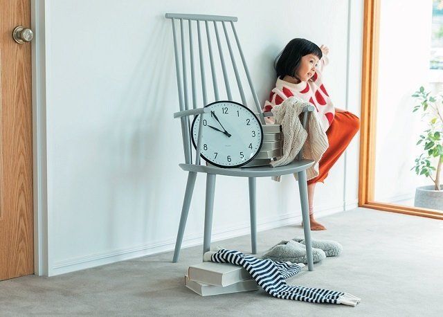 ダイニングテーブルの上に何もないと、部屋全体が整って見えるもの。ちょい置きした雑誌や郵便物、やりかけの宿題などを放置しないよう、食事の前や寝る前など、片づけのタイミングを決めて、小まめにリセットを。