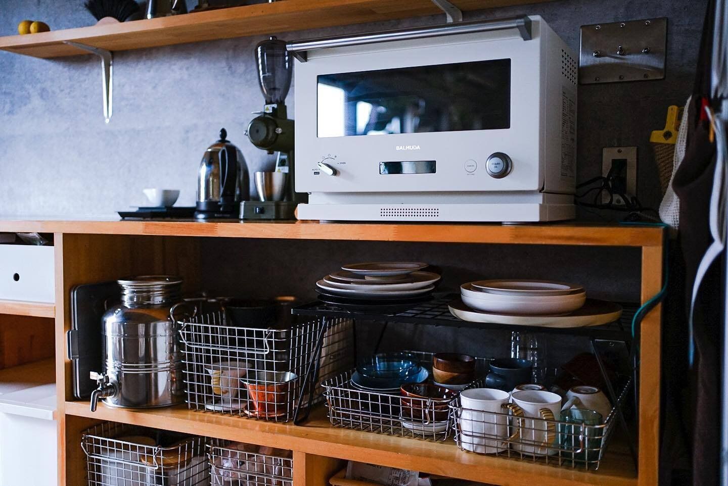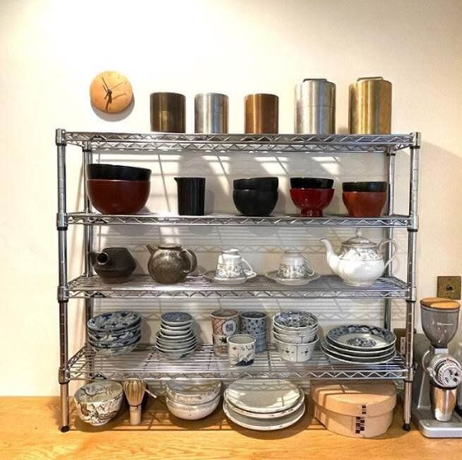 オープン収納といえばスチールラック。器も取りだしやすそうですよね。また余裕を持って食器が並べられており見た目にも美しい!自分の持っている食器に合わせて高さをカスタマイズできるのもスチールラックのうれしいポイントです。オープン収納だからこそ「きれいにしなきゃ」と緊張感をたもつことにもなりそうですね。