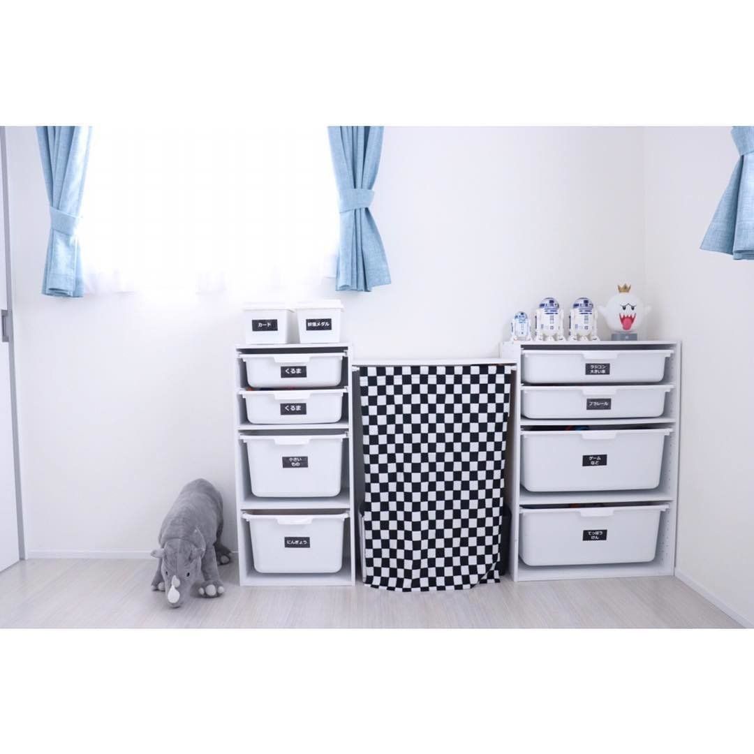 • ごちゃつく色を白の収納ボックスでスッキリ!