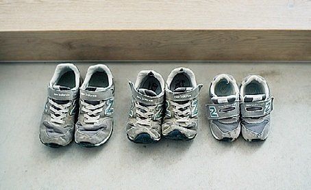 娘たちのスニーカーは、「ニューバランス996」のグレー1足だけで全員お揃い。「どんな色の服にも合うから組み合わせ万能。夏は洗ってもすぐ乾くからサンダルとこれ1足で充分」。