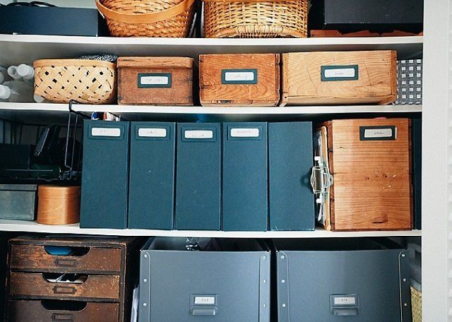 「木箱はその独特の木目や古くなっていく過程が好き」。収納扉の奥で使う木箱もすべて、一生つき合うつもり。アンティークショップや骨董市で見つけたり、道端で拾ったりして集めた物をていねいに使い続けている。