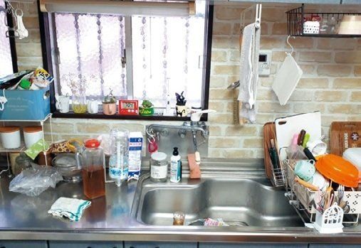 夫、長男、長女の4人家族。「飾る物とゴミが混在しているキッチンは、夫から『食中毒に気をつけて!』と言われるレベルのやばさです(汗)」